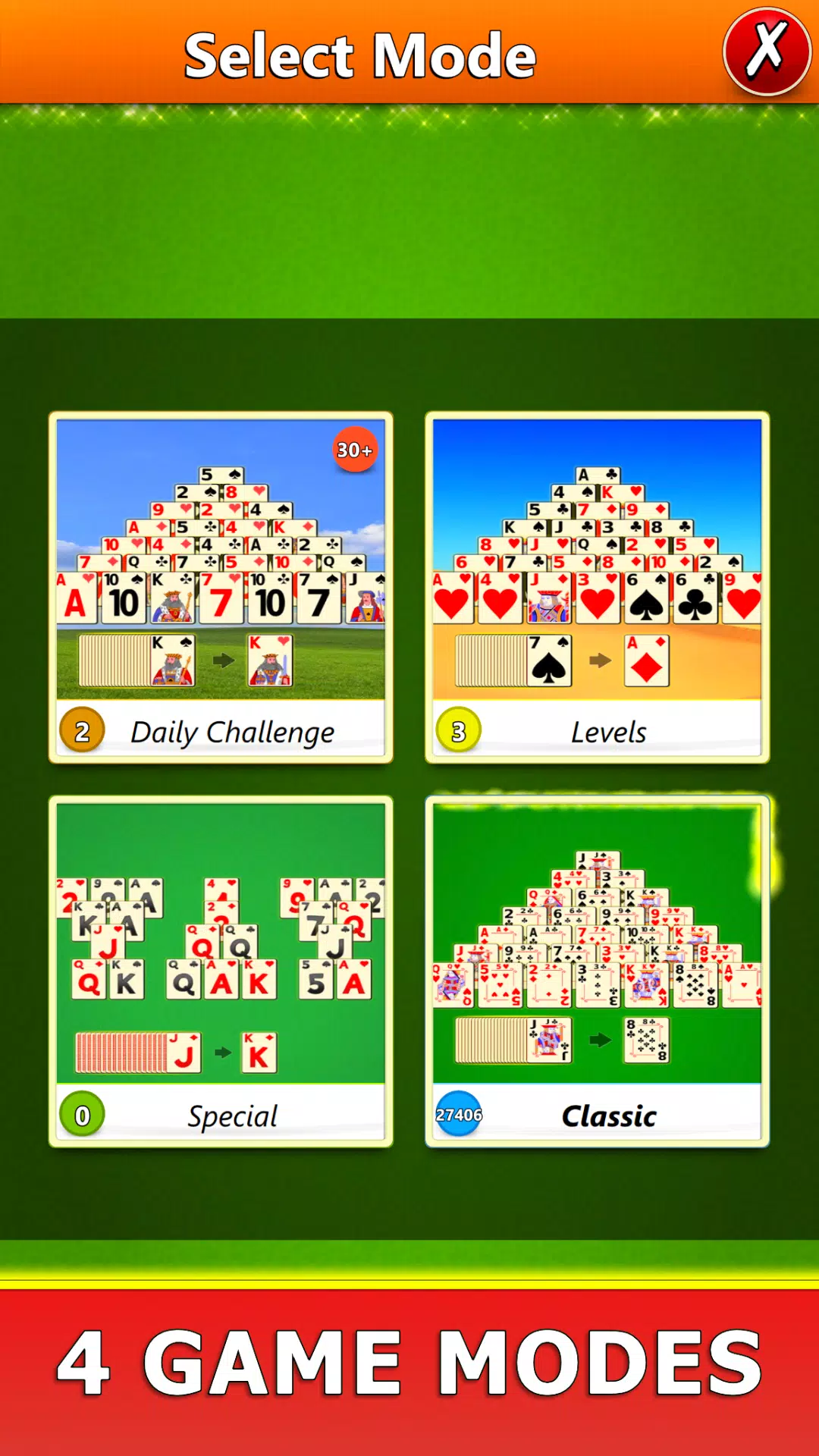 – 经典游戏,您熟悉和喜爱的版本,采用经典金字塔布局