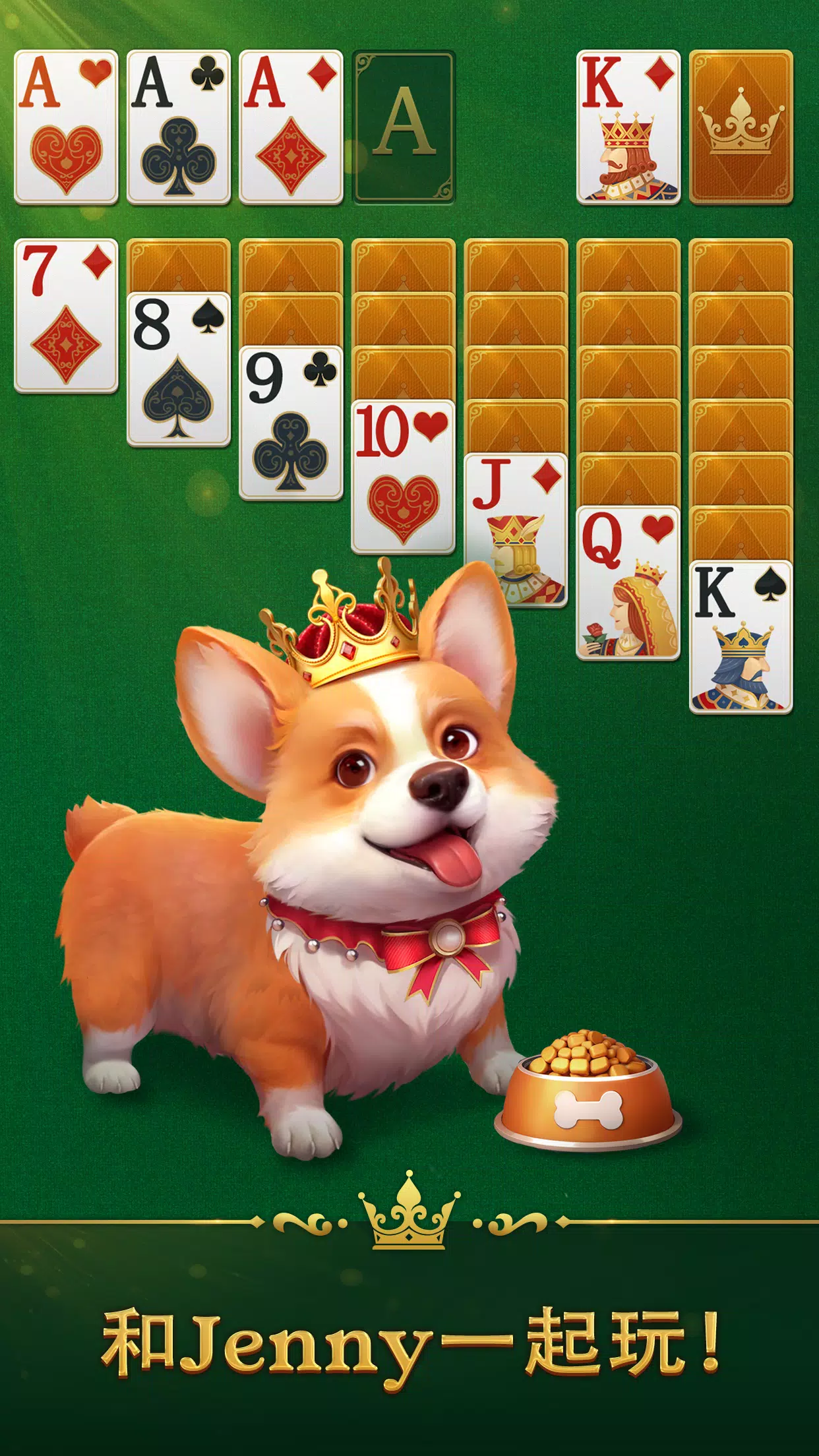 继续享受您钟爱的免费纸牌游戏,同时获得丰厚的奖励,增强您的狗粮和钻石收藏。加入数百万玩家,共同享受最佳免费纸牌游戏。体验一个充满纸牌接龙、皇家纸牌游戏和我们特别的柯基犬伴侣Jenny的优雅世界。