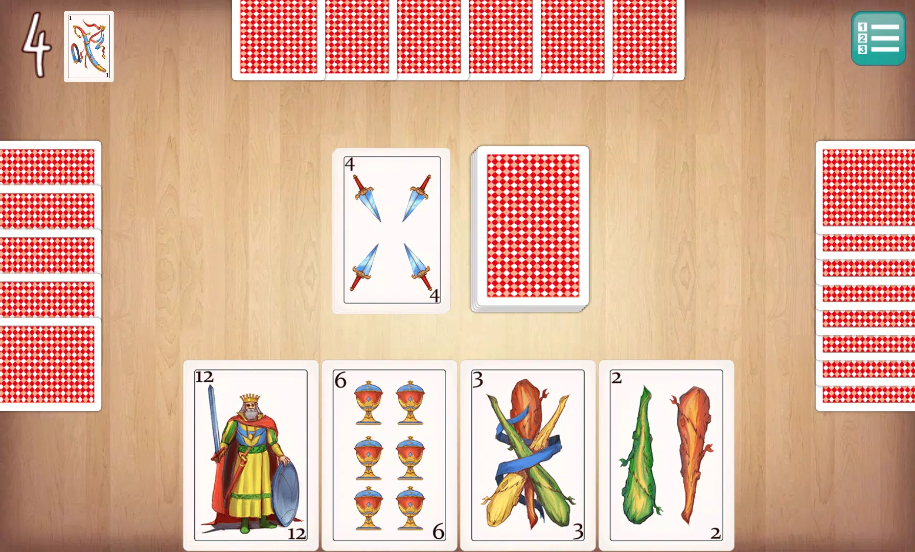 游戏开始时,每位玩家有五张牌,桌面上有一张。
