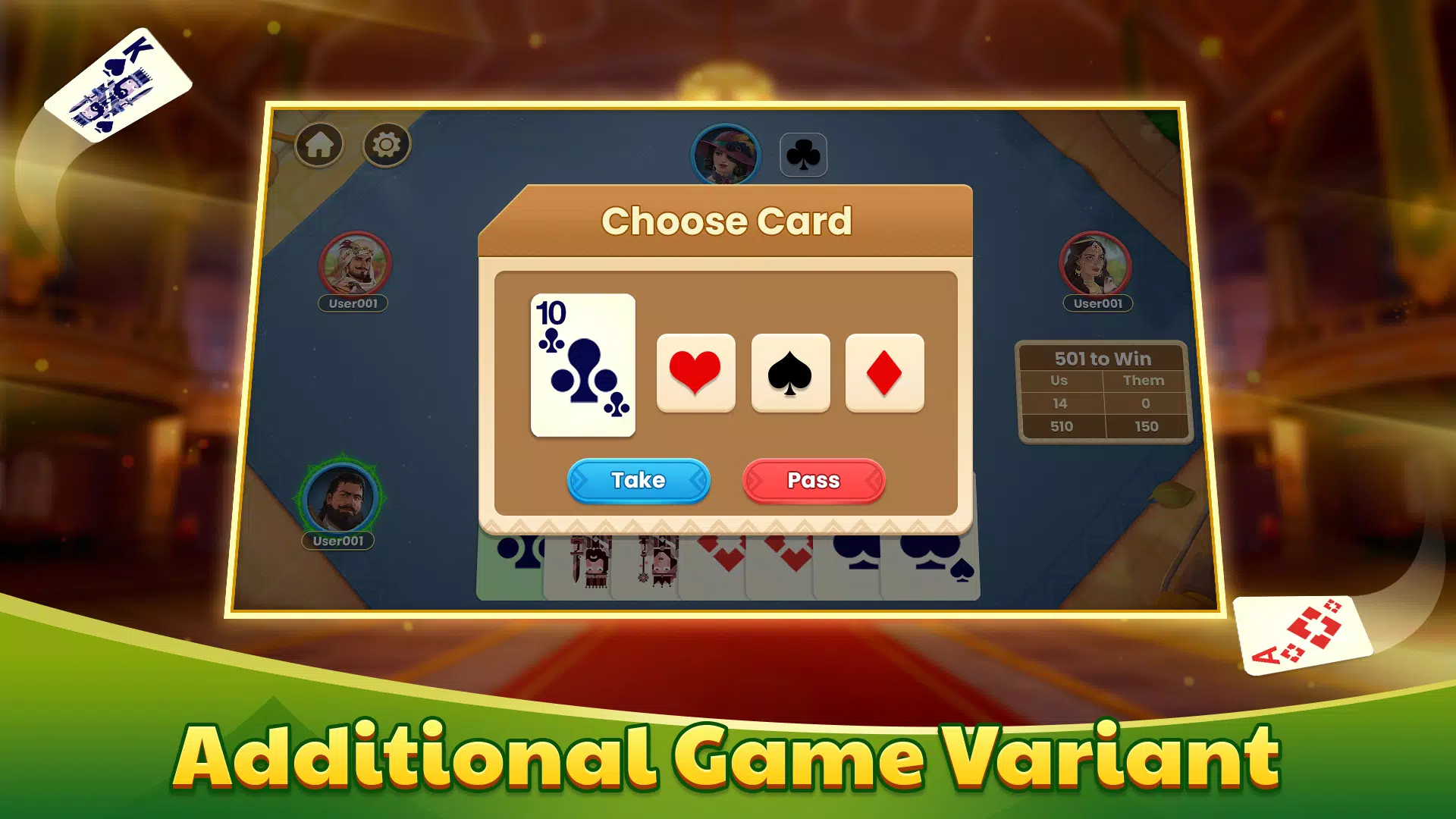 – 玩家竞叫牌来决定王牌花色或弃牌。