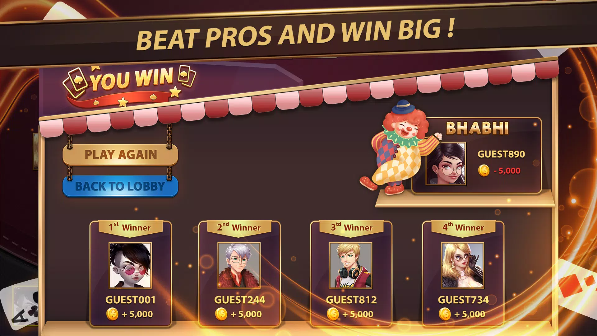 -bhabhi游戏融合了策略元素,例如吃墩牌型游戏和老虎机游戏的运气元素,以及每日奖励轮盘赌,画面精美绝伦。