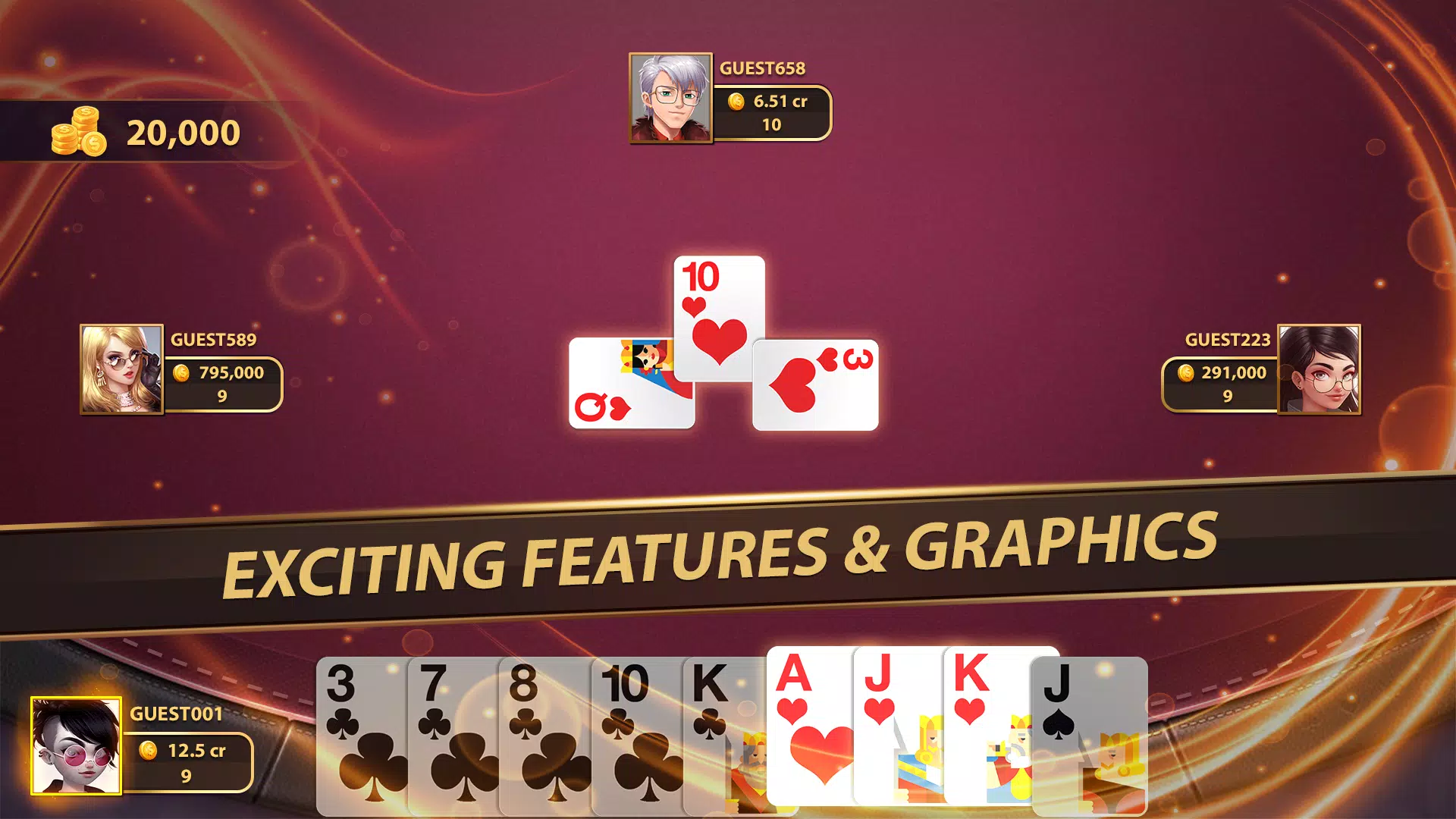 – 加入 bhabhi 卡牌游戏,即可获得 50,000 金币作为欢迎奖励,每天领取“每日奖励”即可获得更多金币!