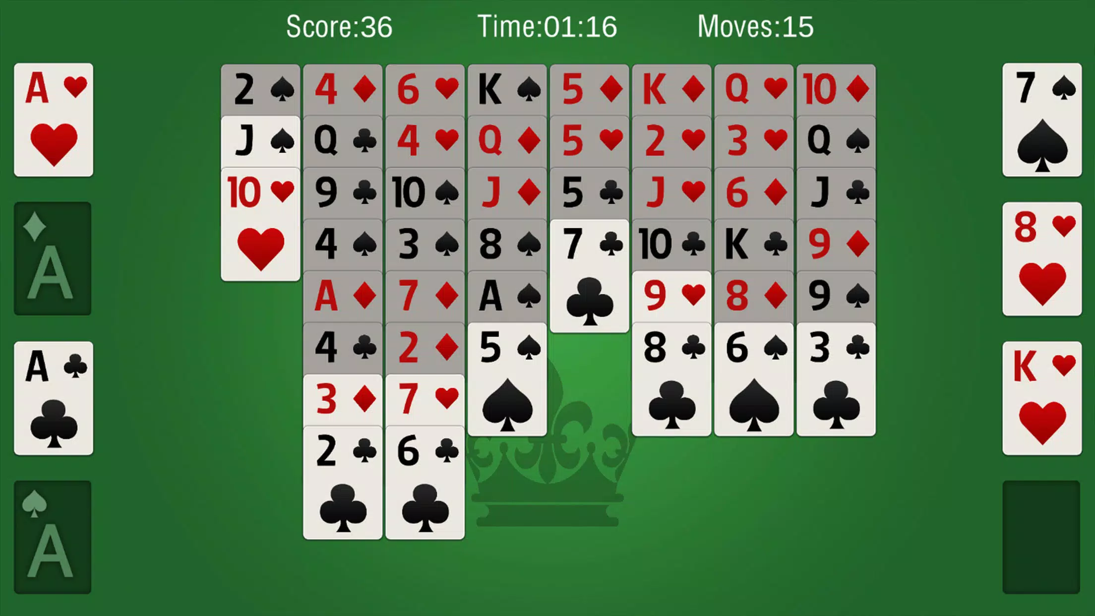 • 经典空当接龙玩法:在列和基牌之间移动纸牌,完善您的策略。