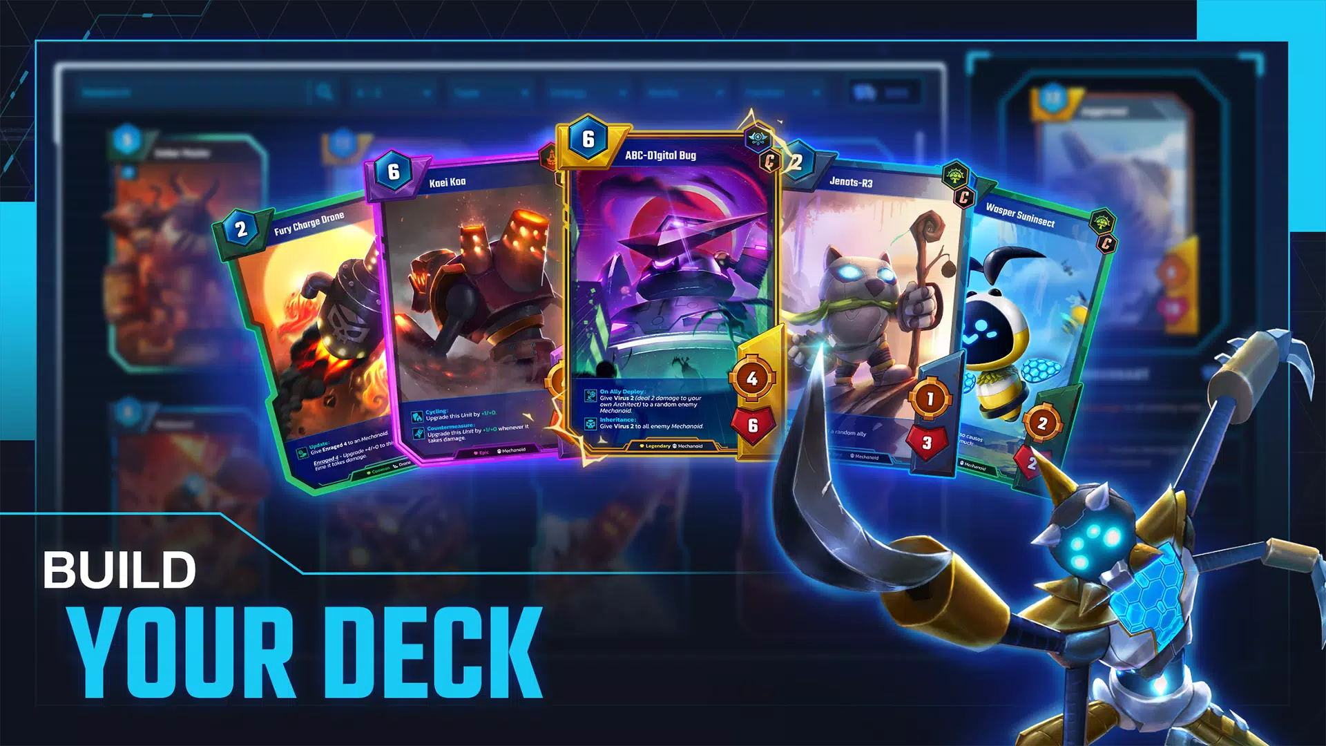 构筑你的卡组,部署你的机械体,在动态的 3×9 网格中展开激战。选择你的阵营,在考验技巧和策略的战略战斗中智胜对手。在 DATA2073 中赢得胜利,赢取丰厚奖励。