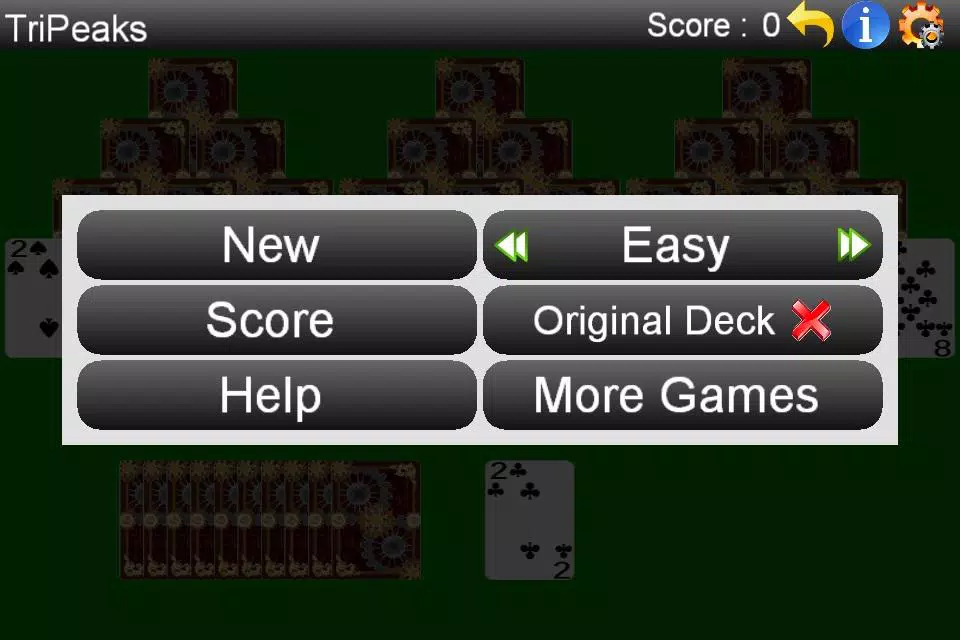 与其他可追溯至 18 世纪的单人纸牌游戏不同,三峰纸牌(也称为 TriPeaks、Three Peaks、Tri Towers 或 Triple Peaks)相对较新:它由 Robert Hogue 于 1989 年发明。与任何其他成功游戏一样,数百万个克隆版本已在各种平台上诞生。那么,为什么您应该尝试我们的版本呢?我们尝试在一个很小的下载包中,通过多种纸牌布局重现原版游戏的所有乐趣。