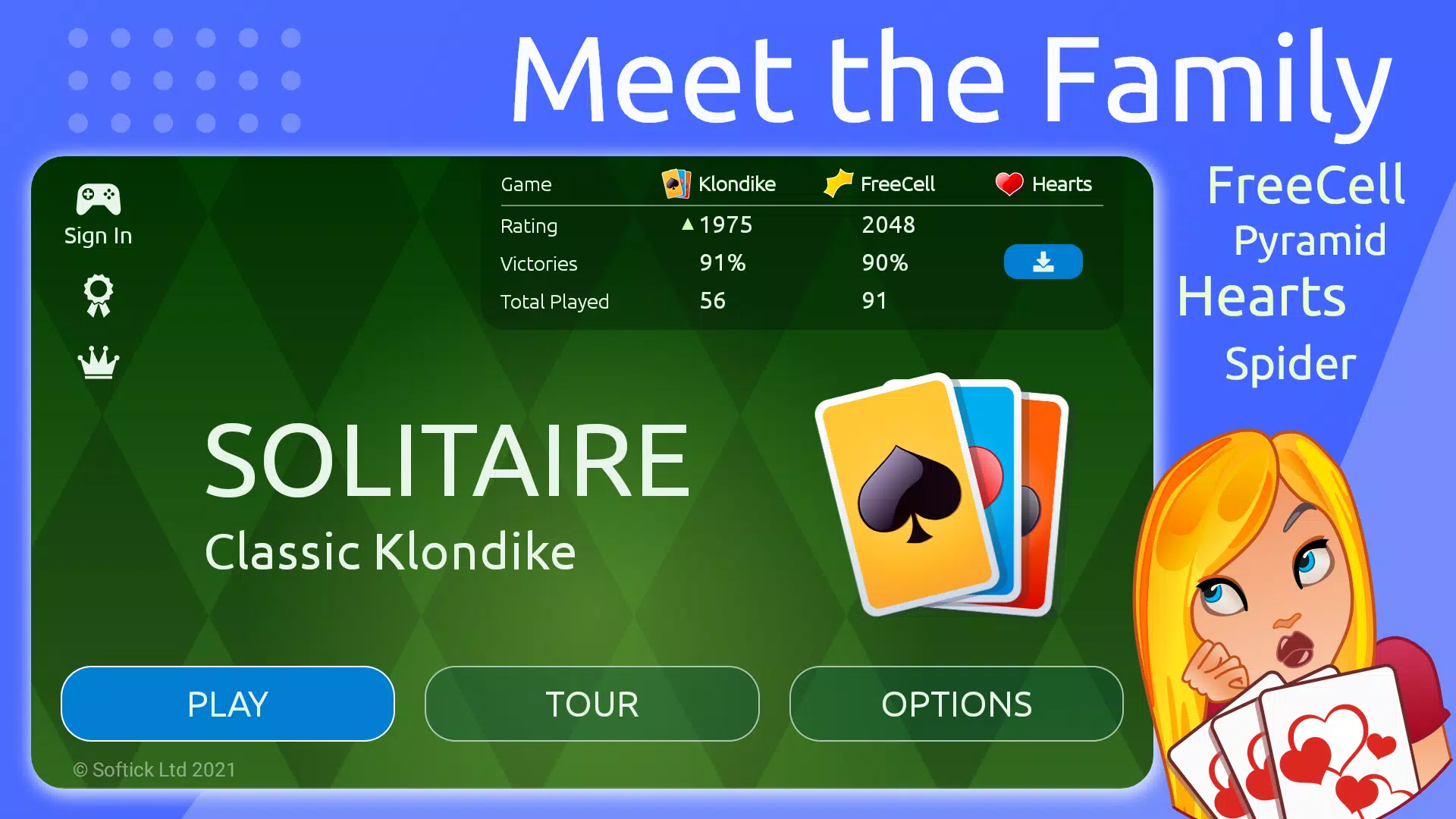 体验最受欢迎的纸牌游戏——经典纸牌,又称克朗代克或耐心纸牌。