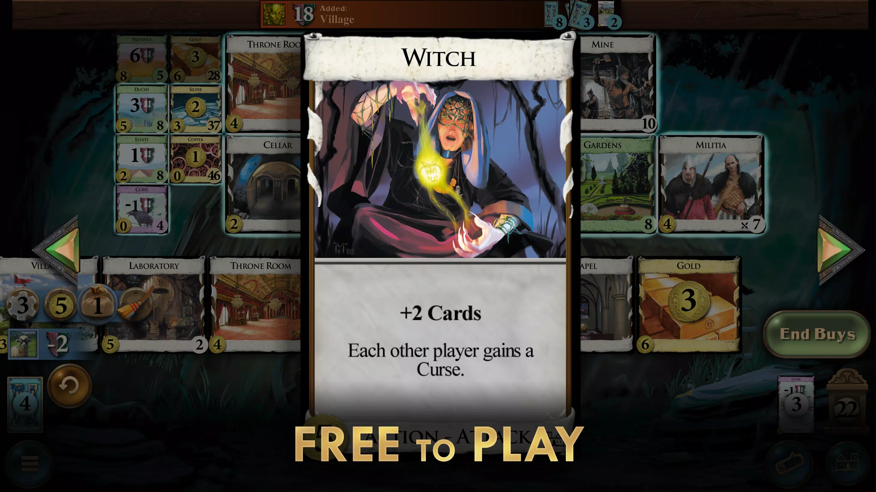 免费下载这款开创一切的游戏!《Dominion》基础套装免费提供。每日任务中每日免费试玩一次扩展卡轮换。在购买之前,您可以进入已启用扩展包的大厅游戏进行试玩。只有房主需要拥有扩展包。