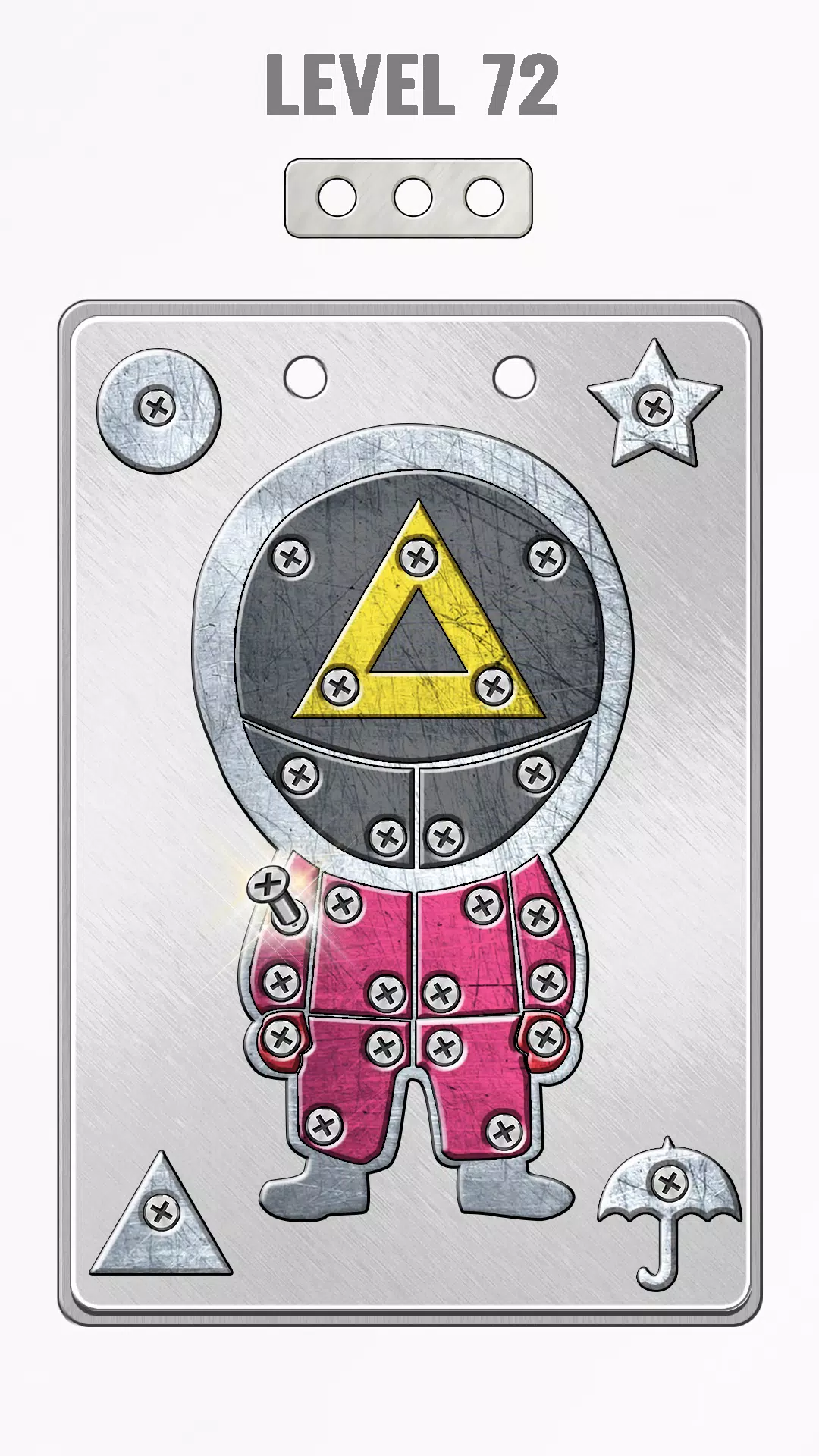 这款游戏玩法简单易上手,令人欲罢不能。点击屏幕,想办法在规定时间内卸下所有螺丝。试试看!