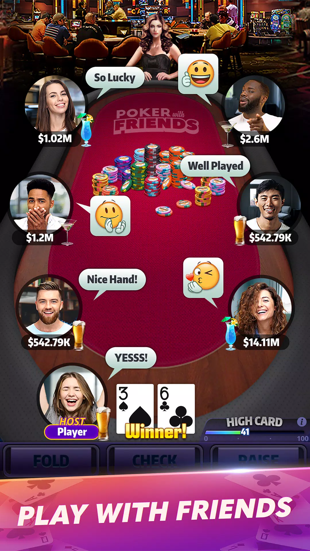 ● FREE CHIPS – Get LOADS of free chips just by logging in! Play poker and win big!