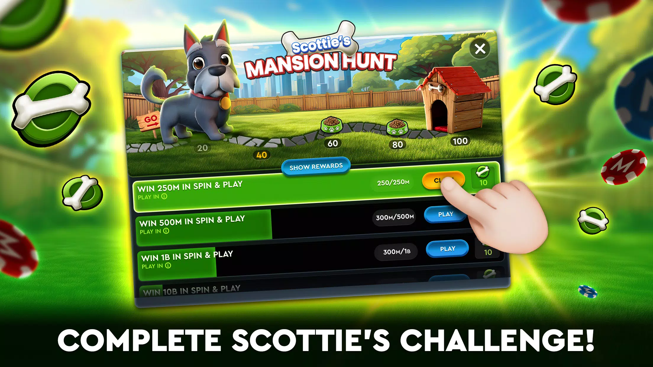 这不仅仅是扑克——这是 MONOPOLY Poker。打出你的最佳扑克手牌,掷骰子,将你的筹码转化为繁荣的房地产!升级著名街道,建造房屋和酒店,扩展你的帝国。还可以与熟悉的角色见面,例如发牌员 MR. MONOPOLY 和在“Scottie’s Mansion Hunt”中寻找回家之路的小狗 Scottie。