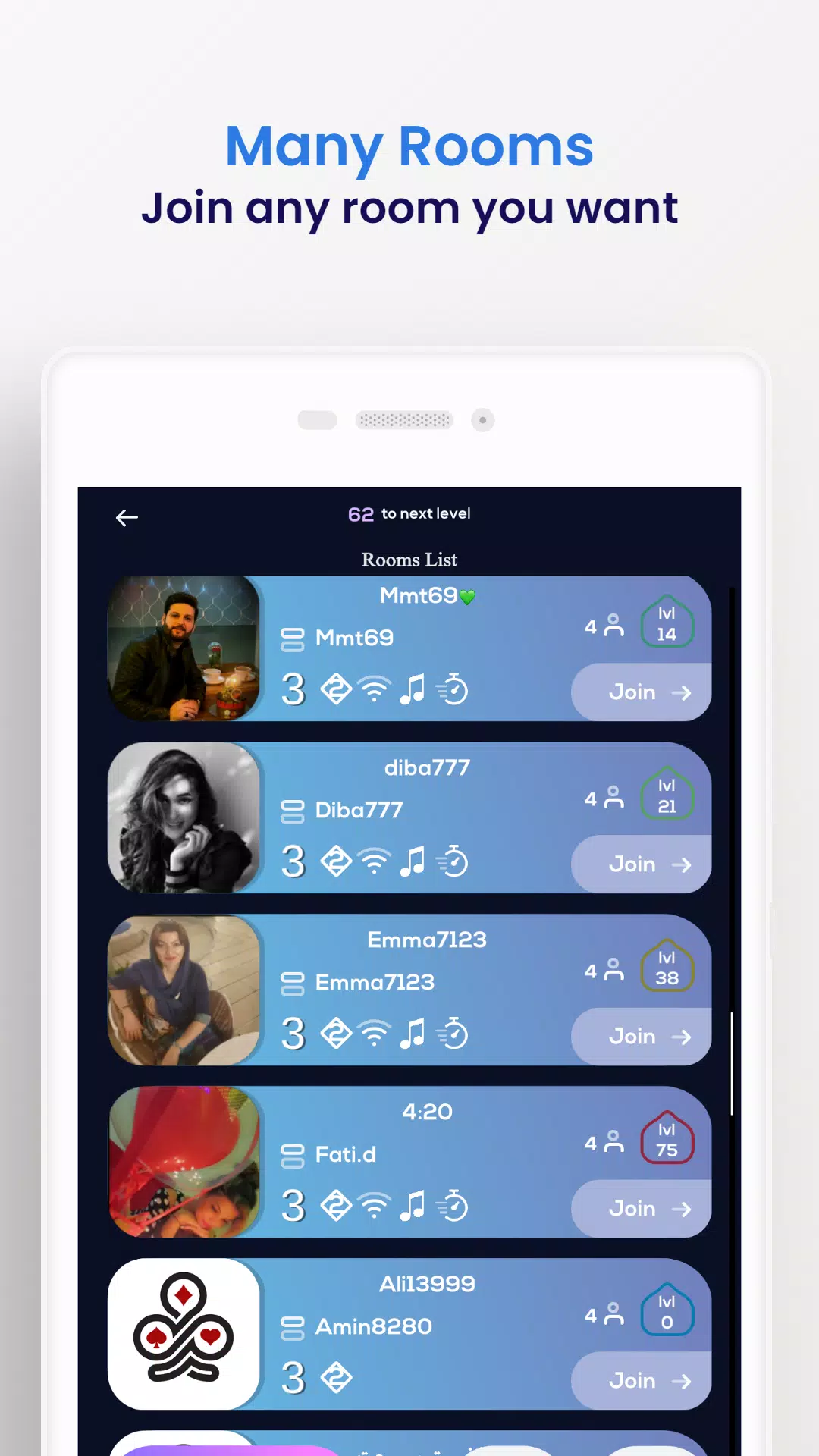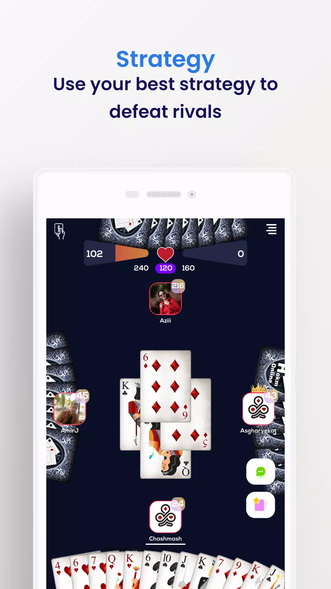 使用 Online Hokm,您可以与来自世界各地的数千名玩家一起畅玩黑桃王,与他们交流,结交朋友。