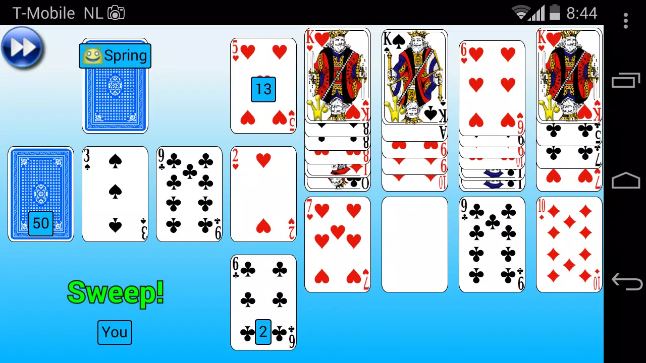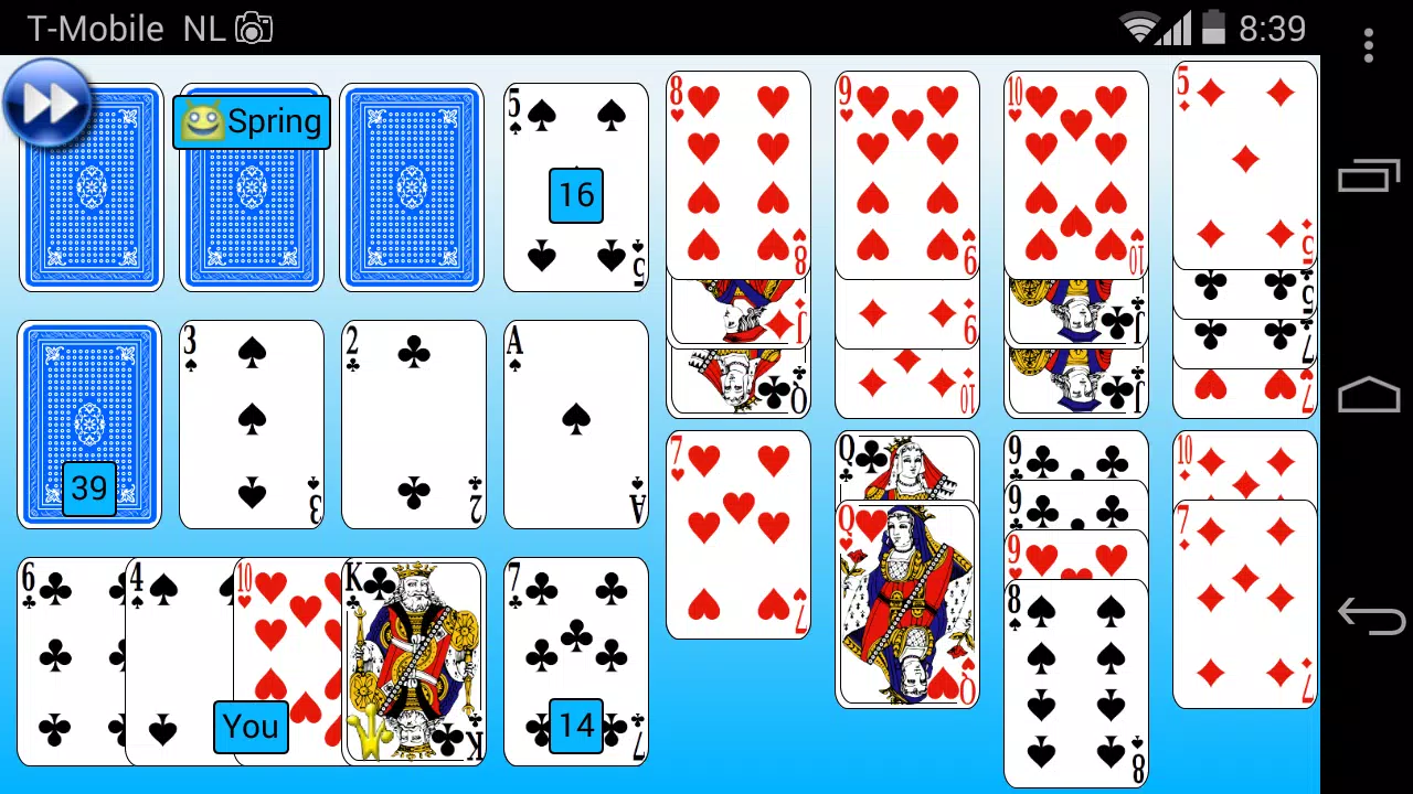 当中心牌堆完成后(通过将 Q 或 K 放在 J 上),该牌堆会被洗入备用牌堆。
