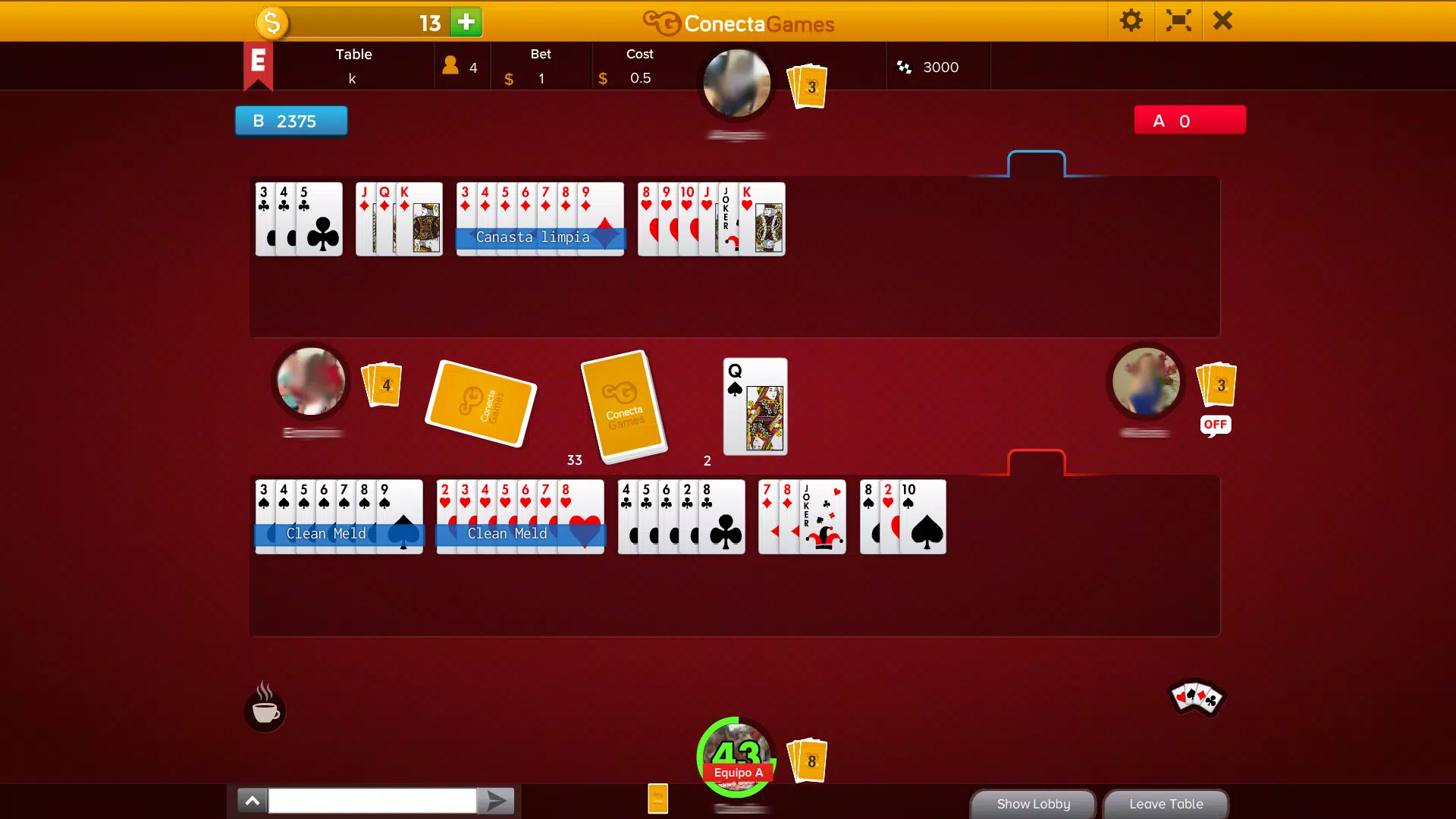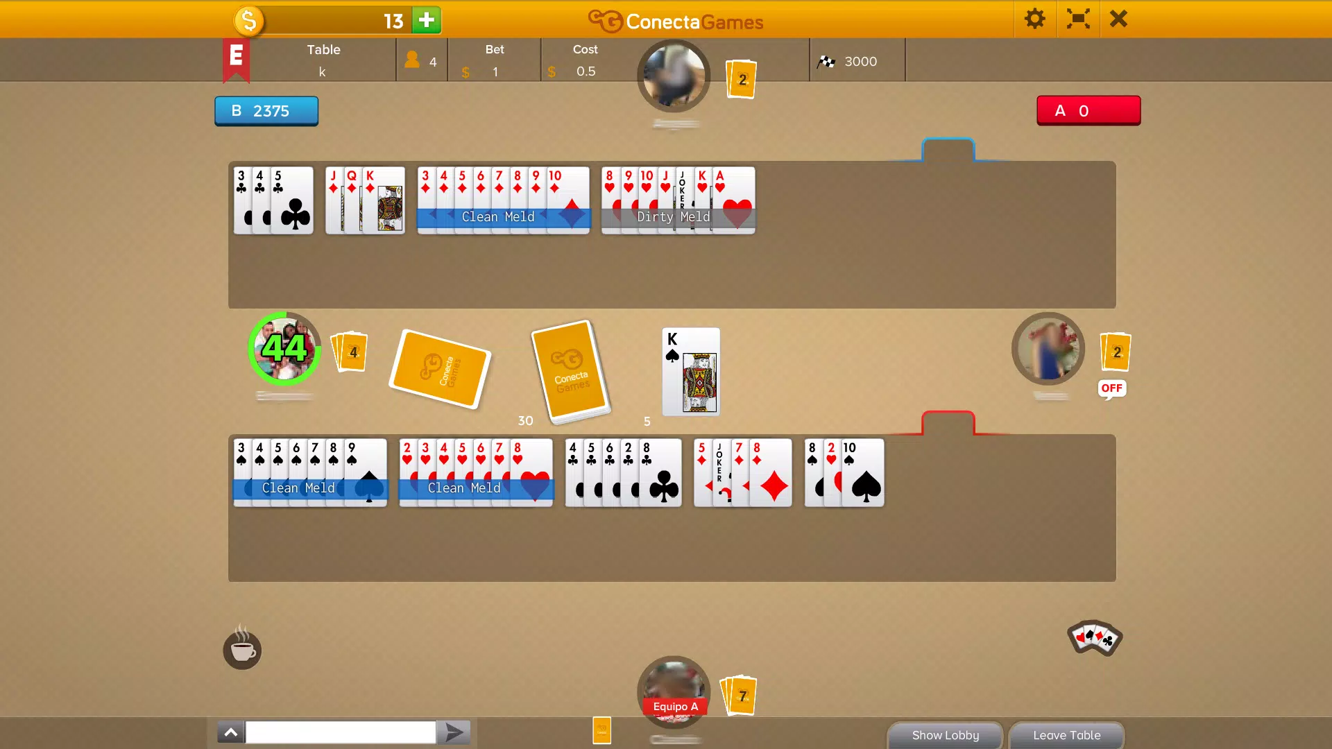 在 Buraco STBL 游戏中,你需要一张干净的卡纳斯塔牌来敲牌,你不能组合同点的牌,而且弃牌堆的牌是看不见的。这是 Buraco 热门游戏的精彩变体。