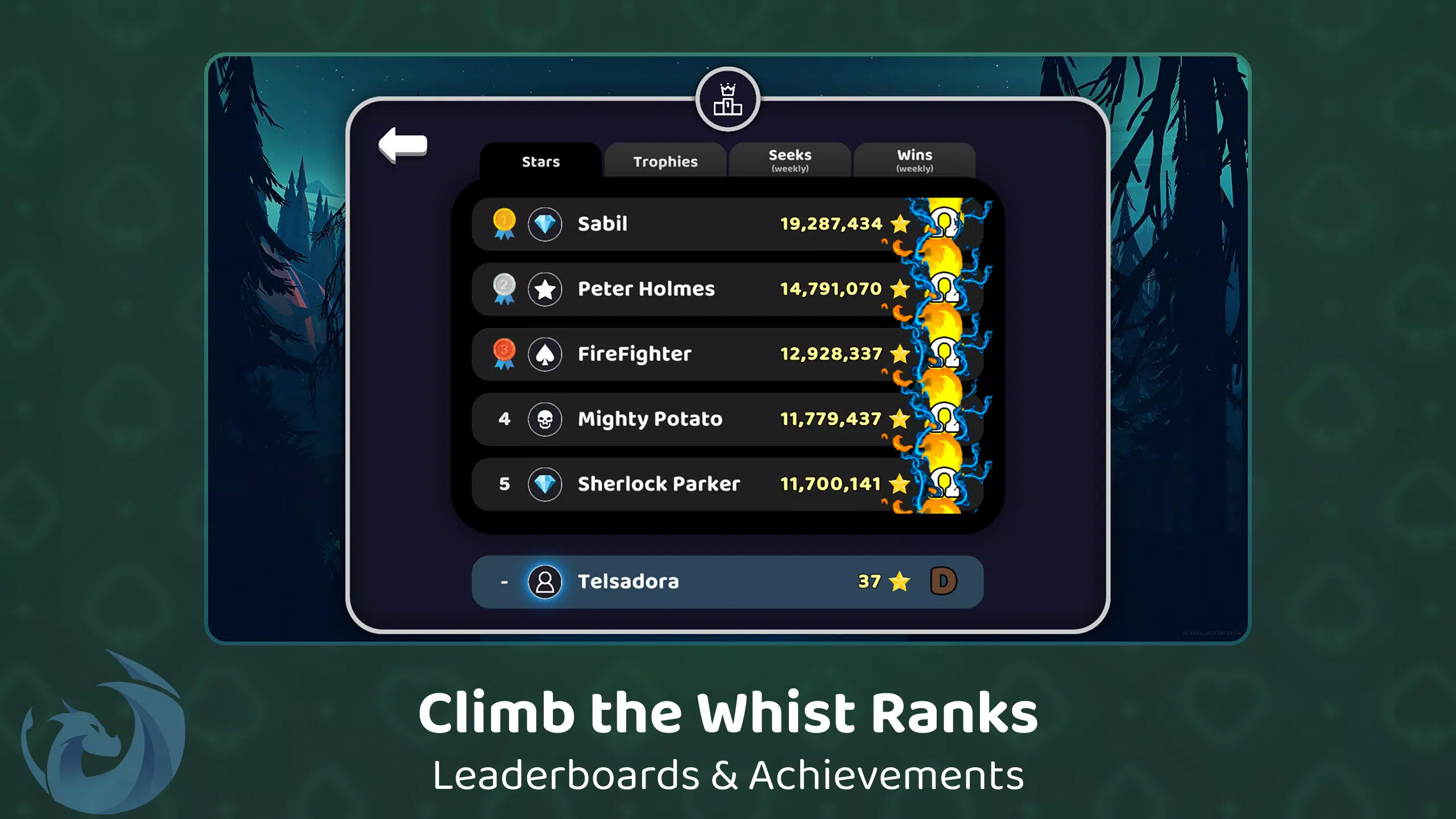 * 惊险刺激的评级竞技场:证明您的战略实力!我们动态的匹配系统会将您与水平相近的玩家配对,进行公平、刺激且排名靠前的比赛。攀登排行榜,让您的名字跻身惠斯特精英之列!