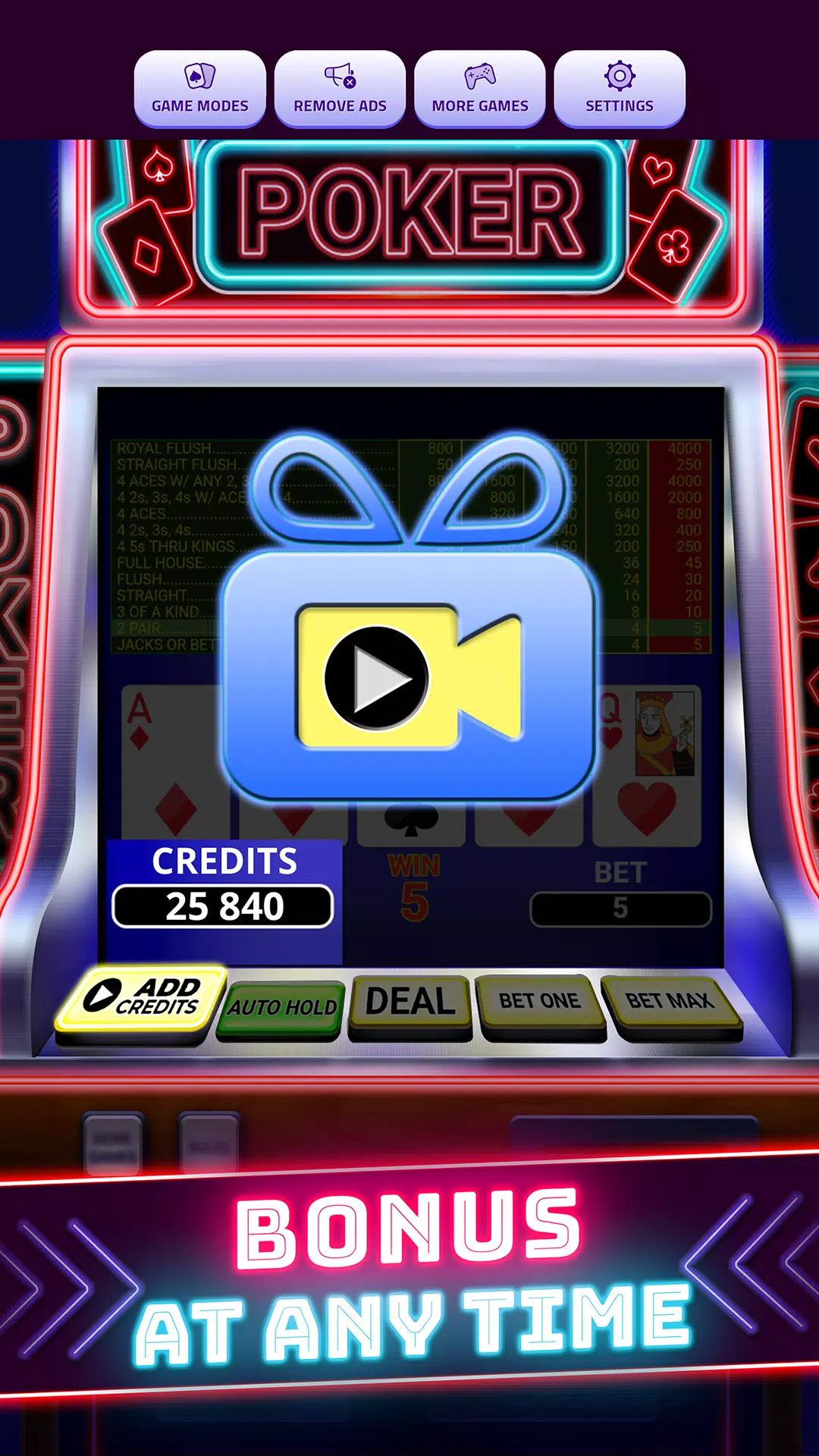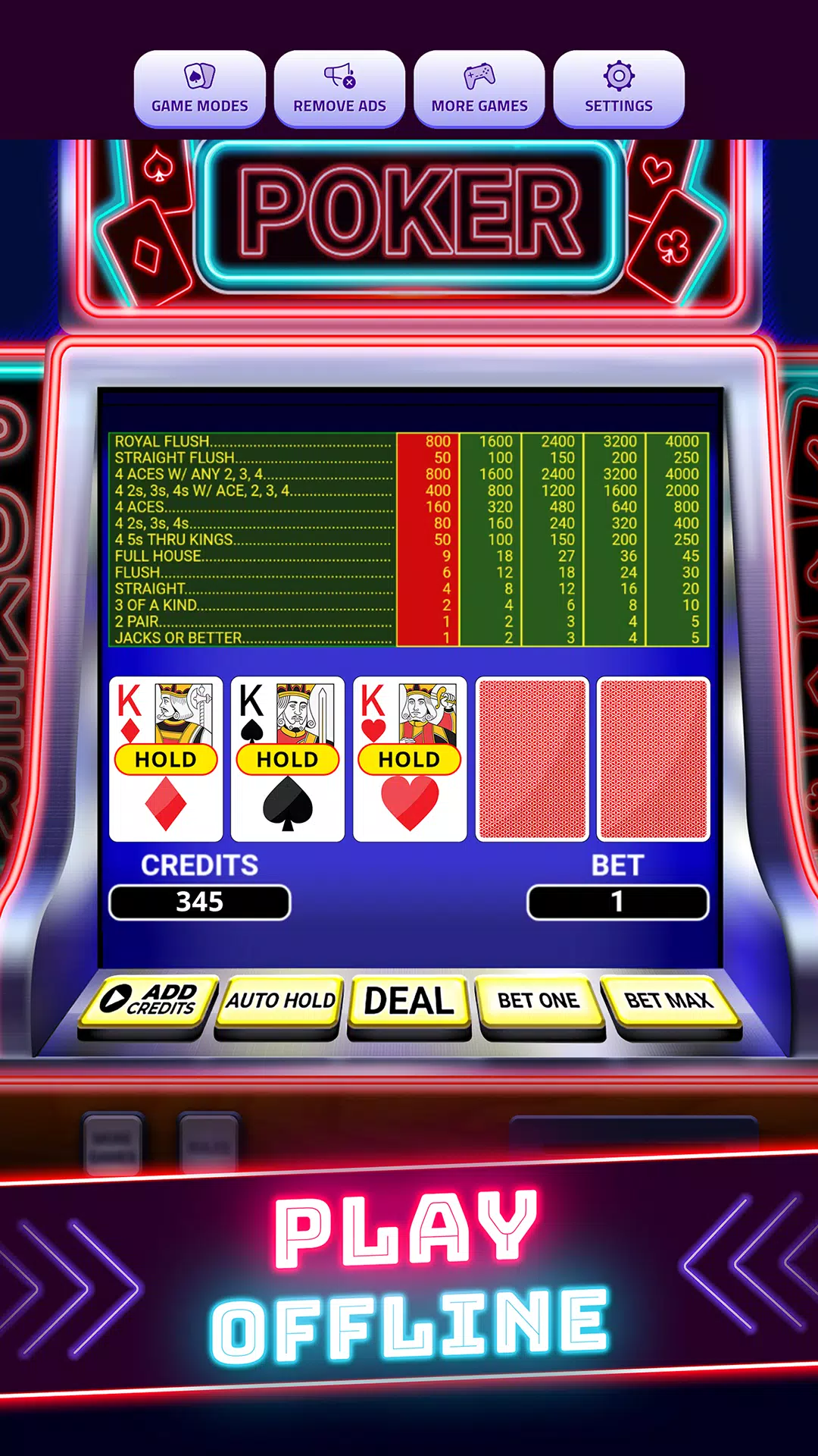 免费离线畅玩扑克!获取我们的视频扑克游戏,随时随地在移动设备上享受数小时的乐趣!立即下载安卓平台上最棒的免费视频扑克游戏之一!