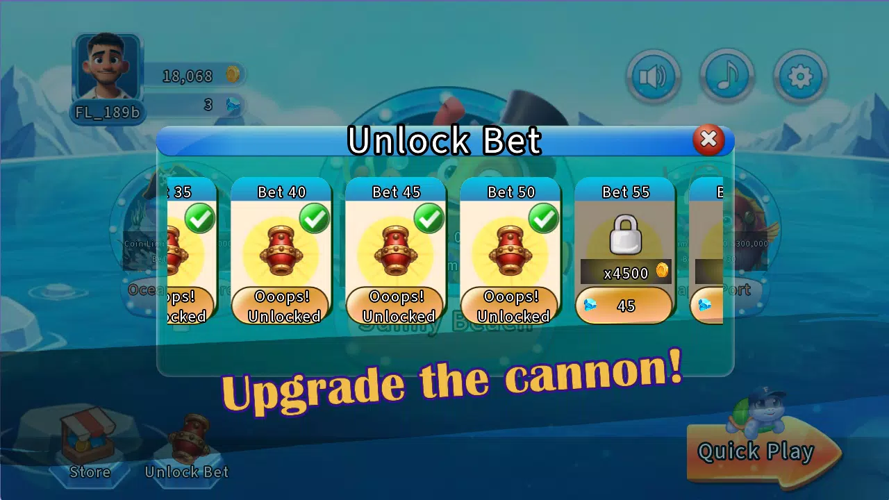 🔫 升级大炮,解锁史诗级鱼类