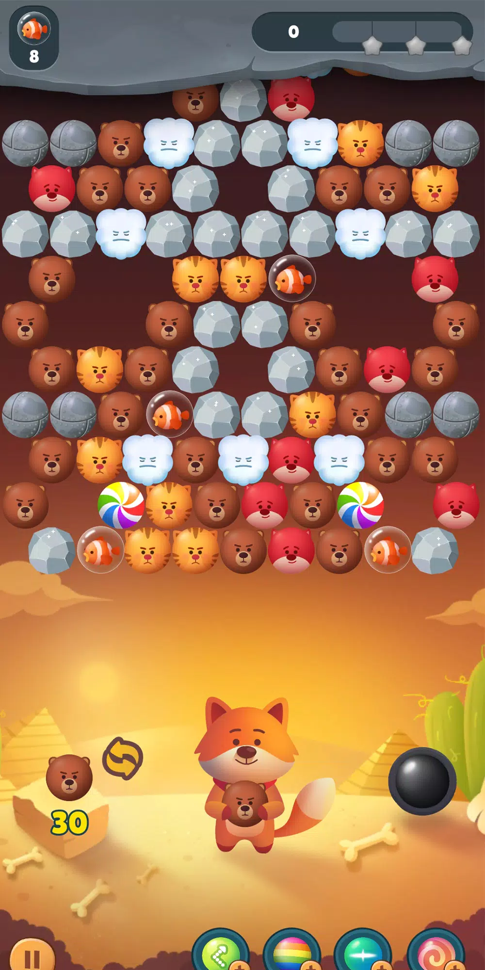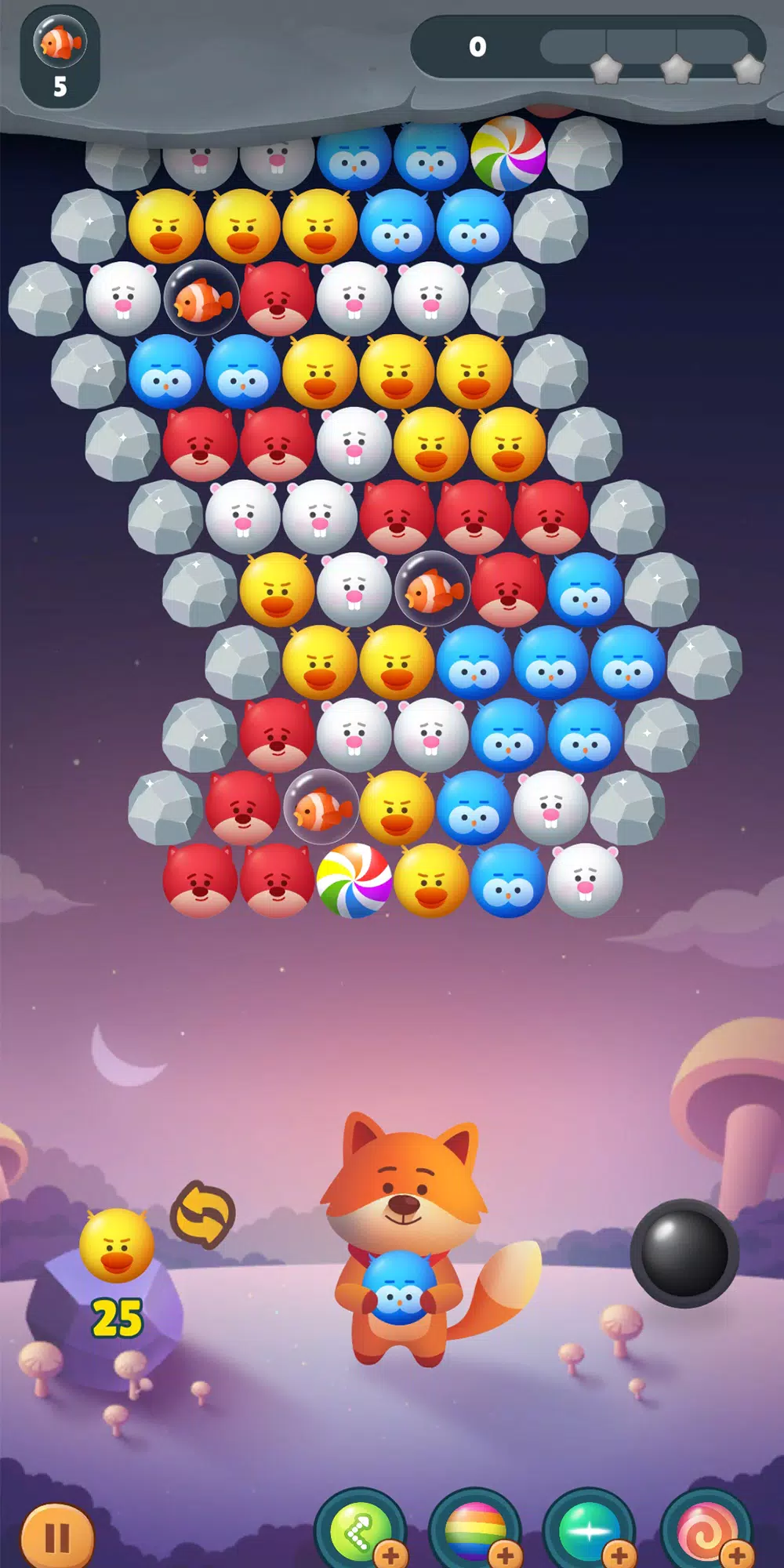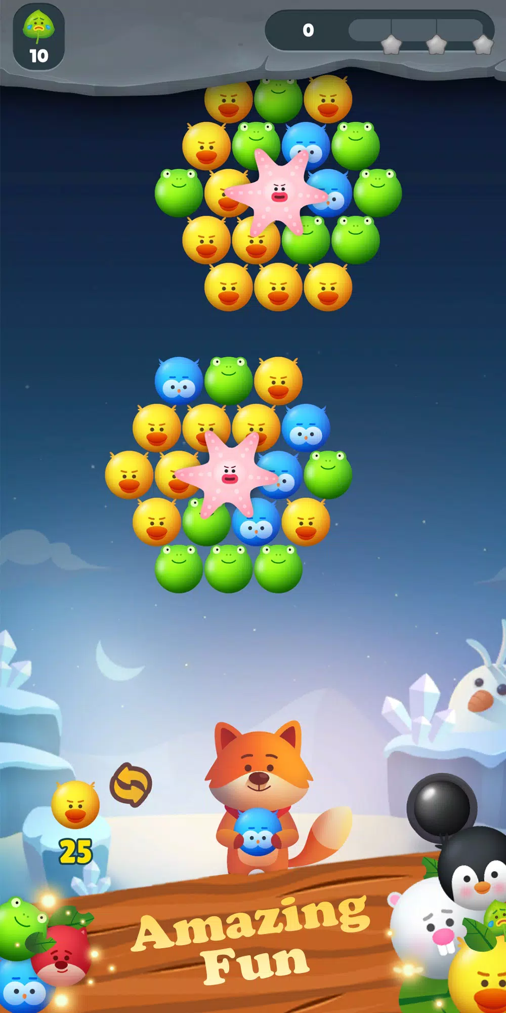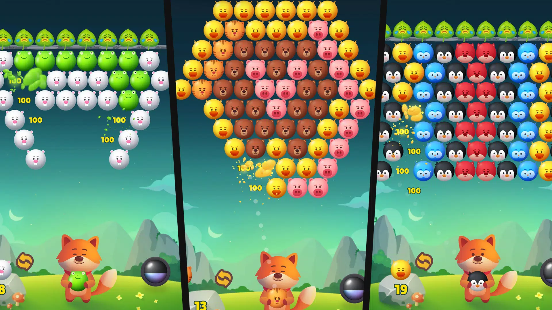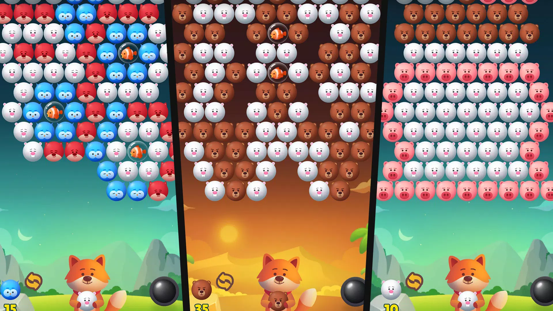 瞄准、匹配并消除三个泡泡,即可通关,拯救等待你帮助的可爱动物!🐼🐰🐶