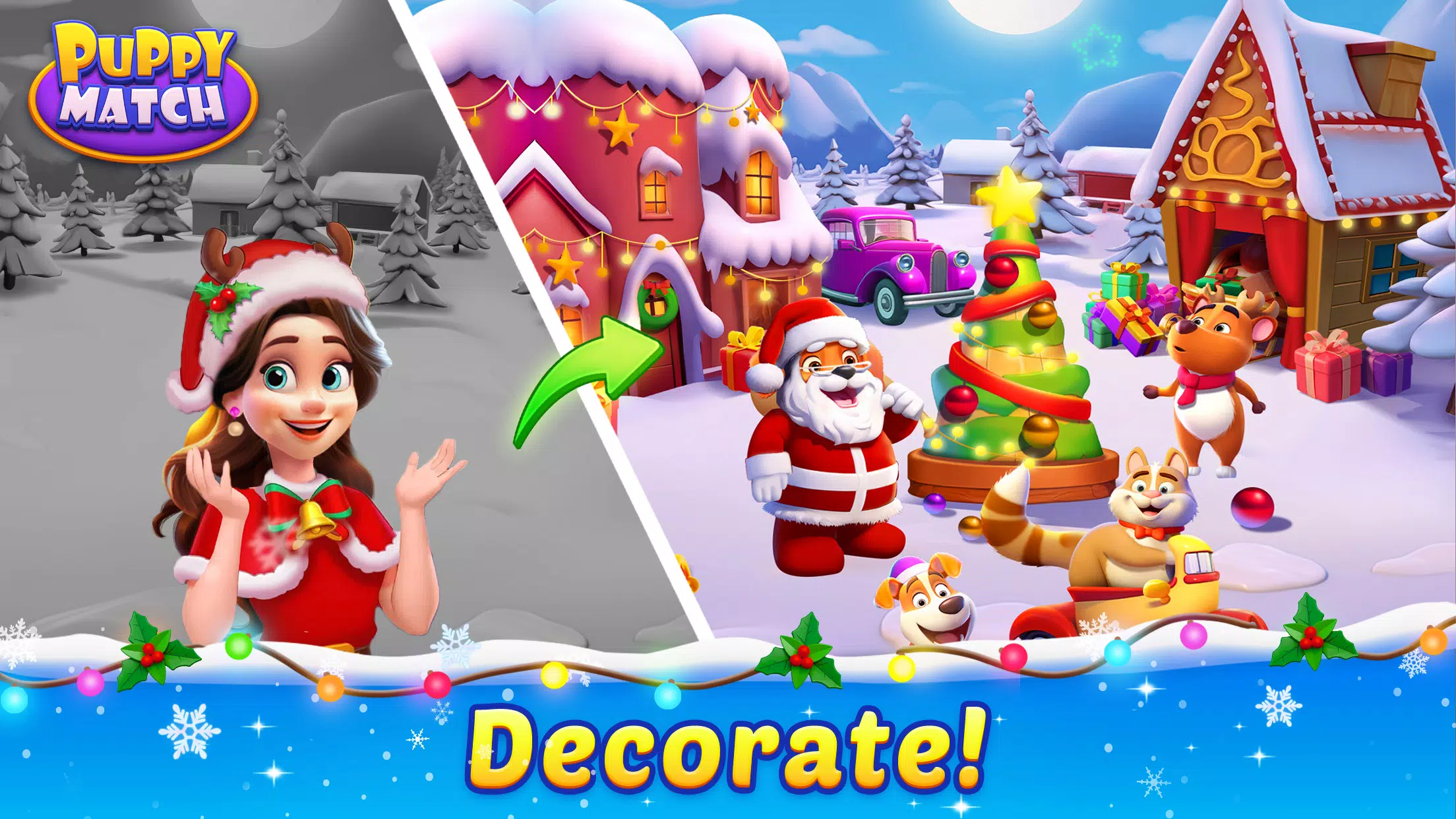 欢迎来到小狗消消乐!在这里,你可以解开三消谜题,用可爱的宠物装饰你的家。精彩刺激的体验正在等你!