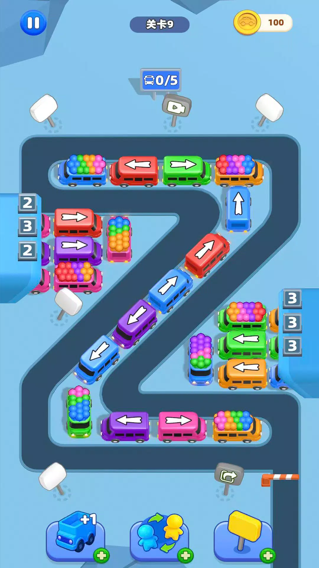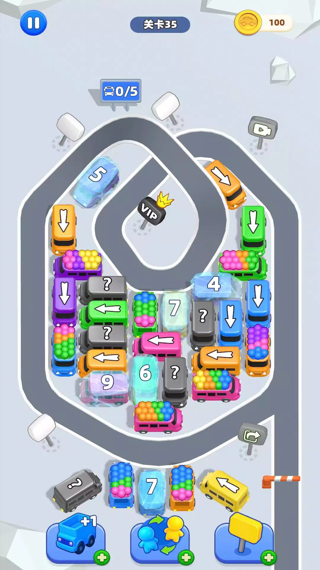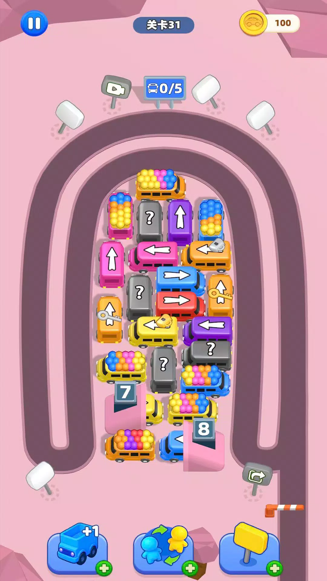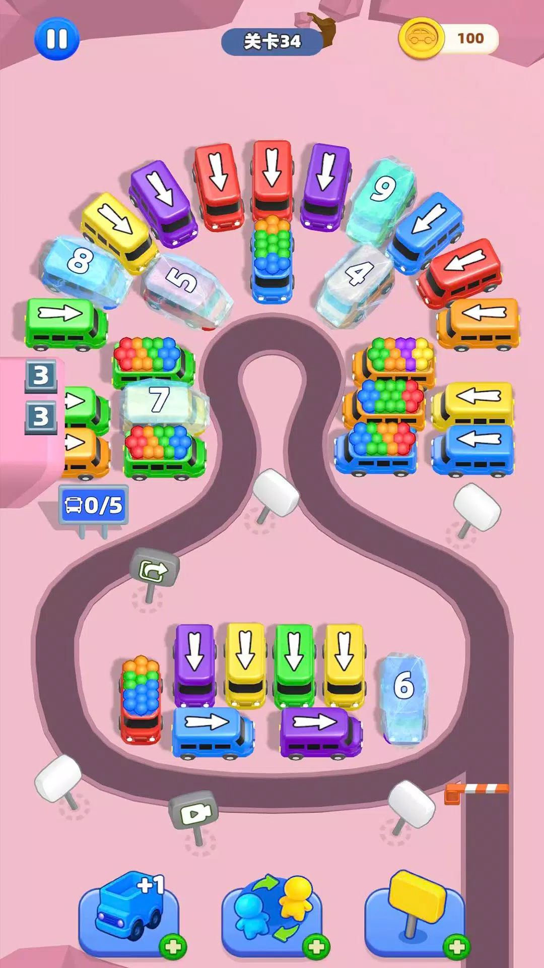 这是最新推出的汽车移动和角色捕捉游戏。游戏中,你需要选择正确颜色的汽车进行移动。汽车会自动收集相同颜色的角色,并将不同颜色的角色放置在赛道上。当汽车装满相同颜色的角色后,任务完成,汽车就会离开。你能移动停车场里所有的汽车吗?