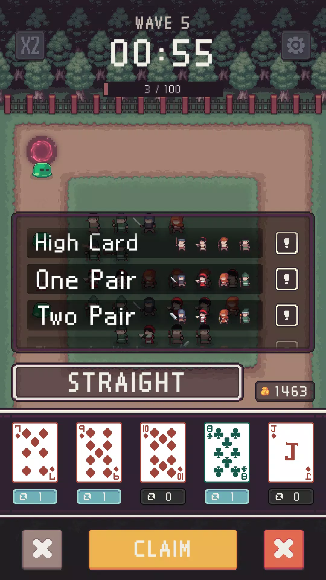 – 召唤单位的强度取决于组成牌型(从一对到同花顺)。