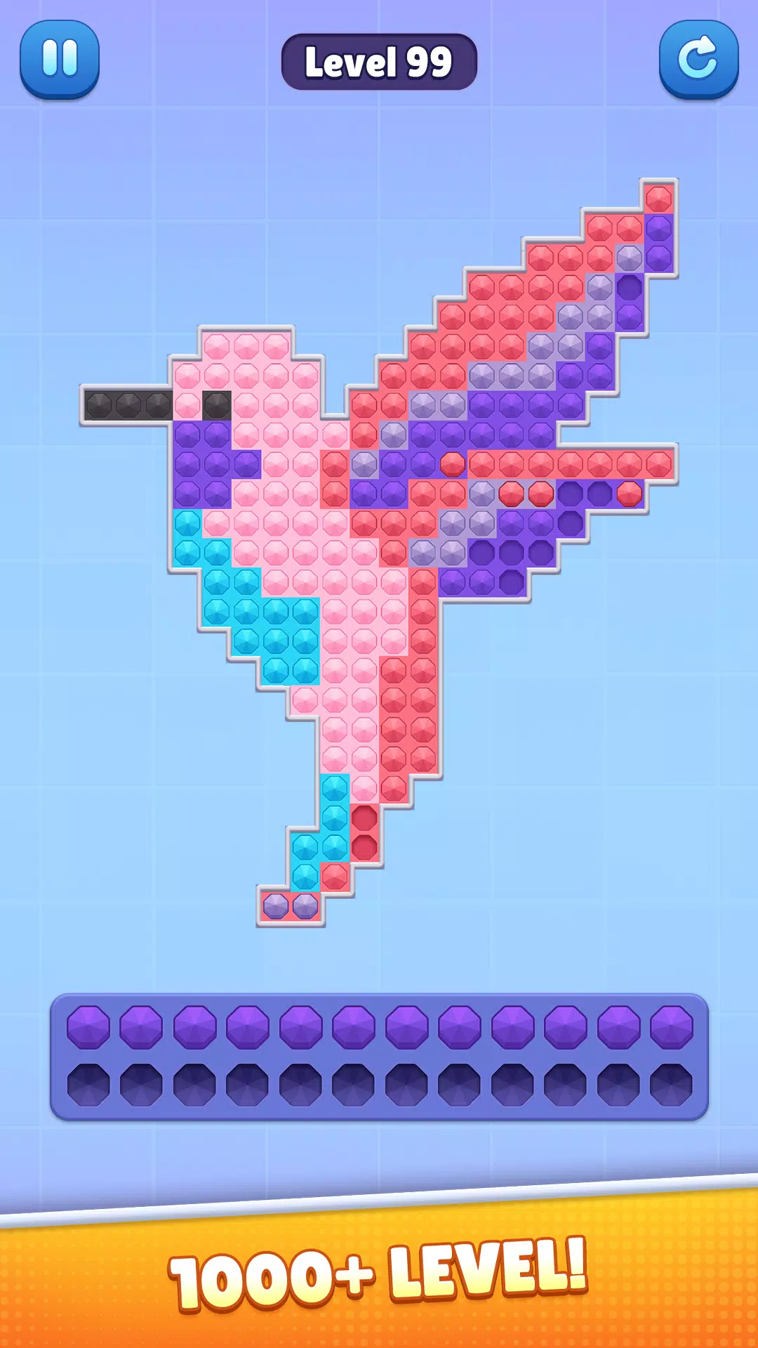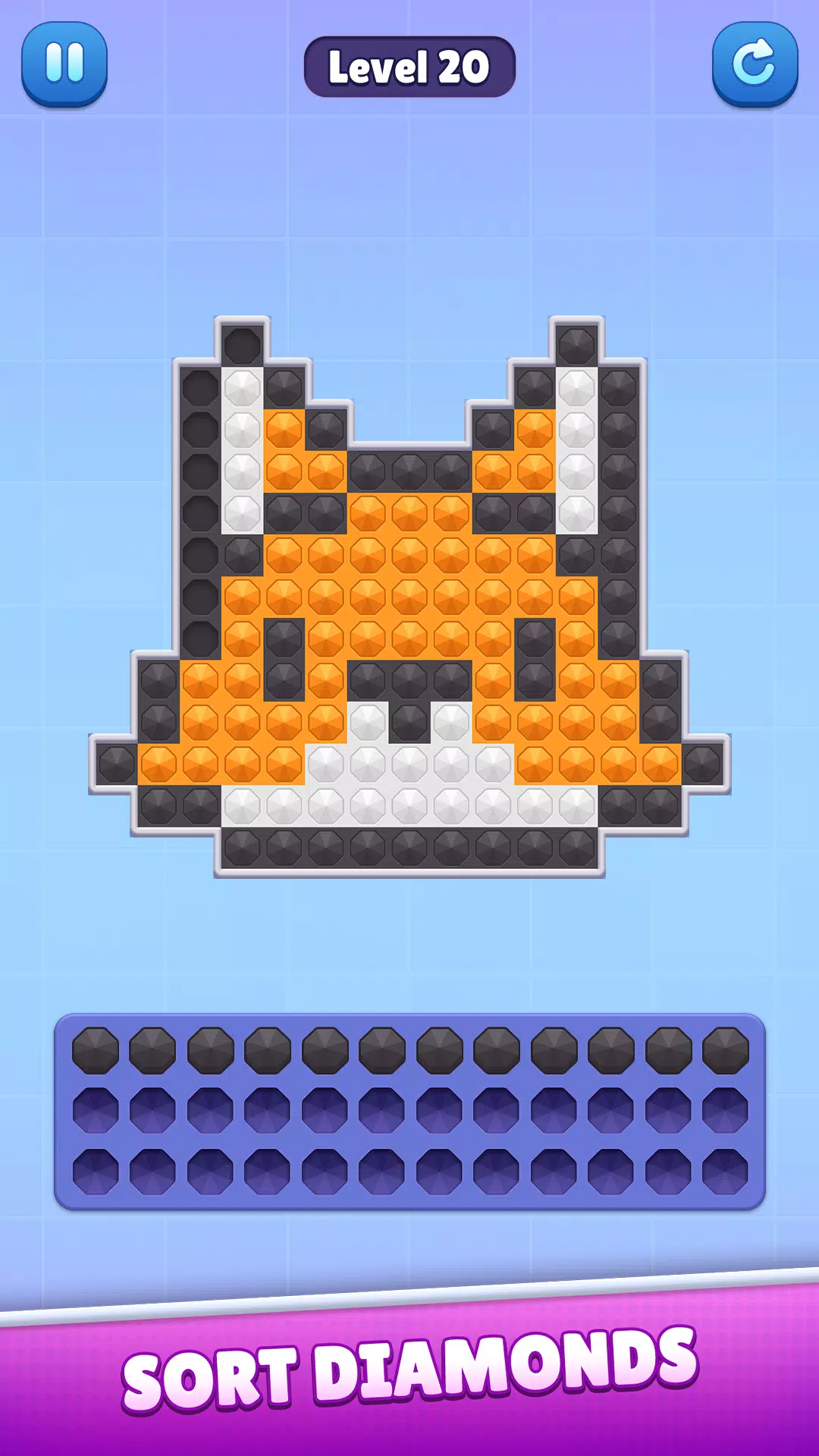 按颜色整理闪亮的钻石,清理货架空间,欣赏精美的像素艺术作品逐渐显现。享受轻松又充满挑战的宝石分类益智游戏,更有限时关卡、主题画廊和特别活动等你来体验。收集奖励,解锁全新艺术作品,并使用额外货架空间、时间冻结和自动分类等实用道具,完成每一幅闪耀的杰作。