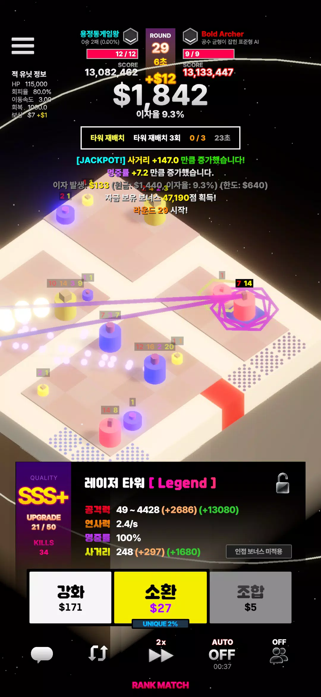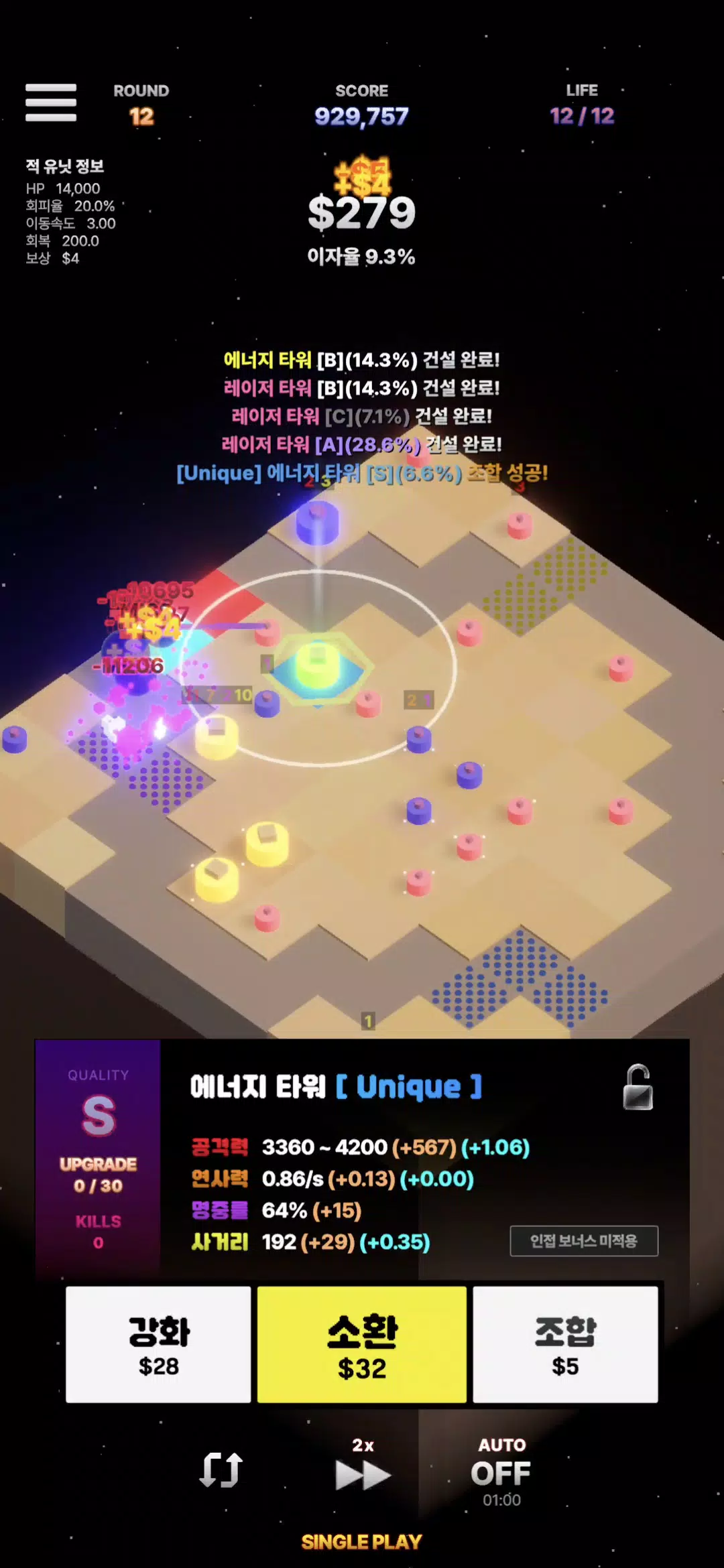 • 部署不同等级和规格的防御塔,助你取得优势。