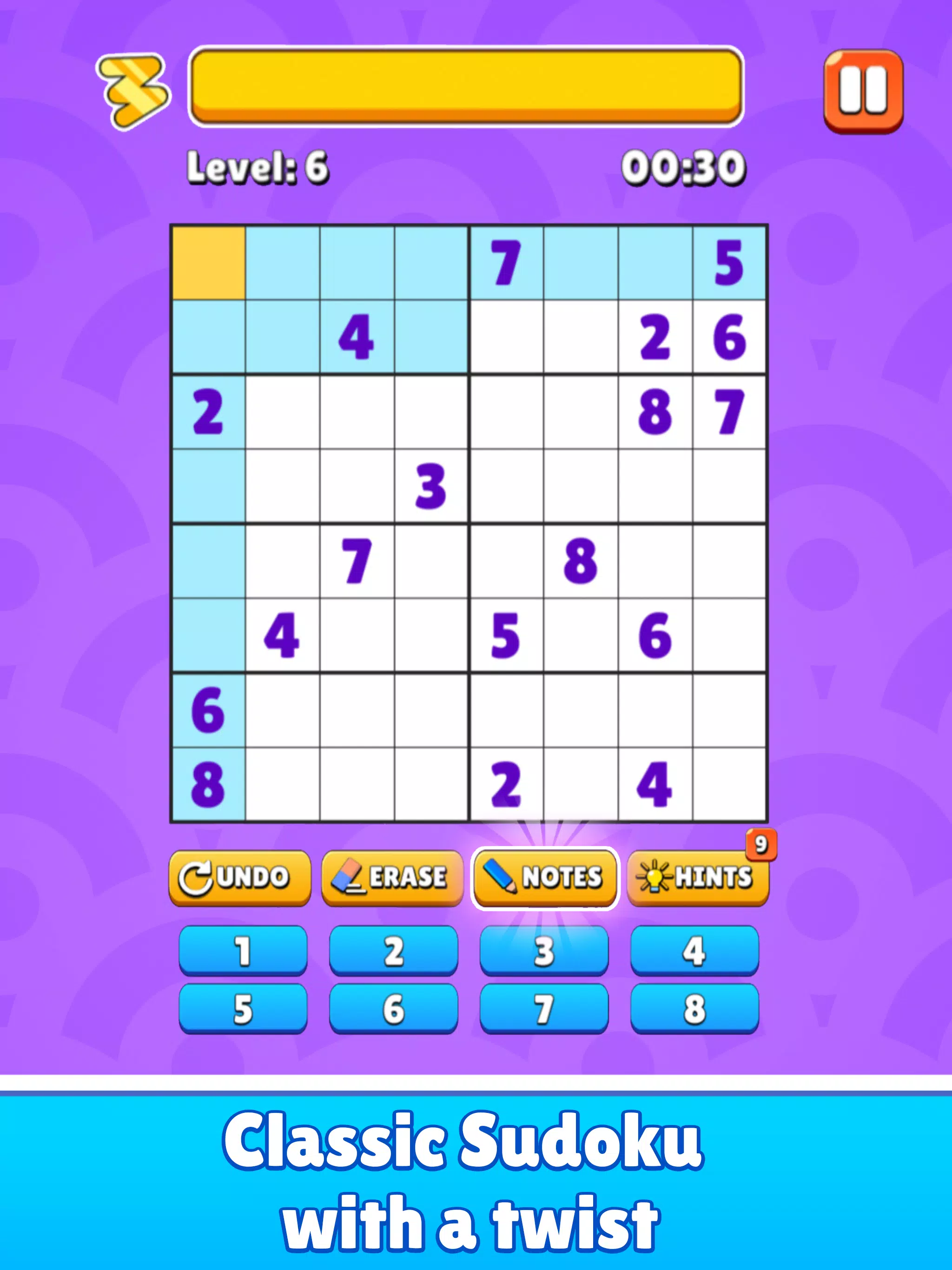 我们希望您喜欢数独刮刮卡挑战赛及其所有功能。您准备好挑战自己的脑力了吗?