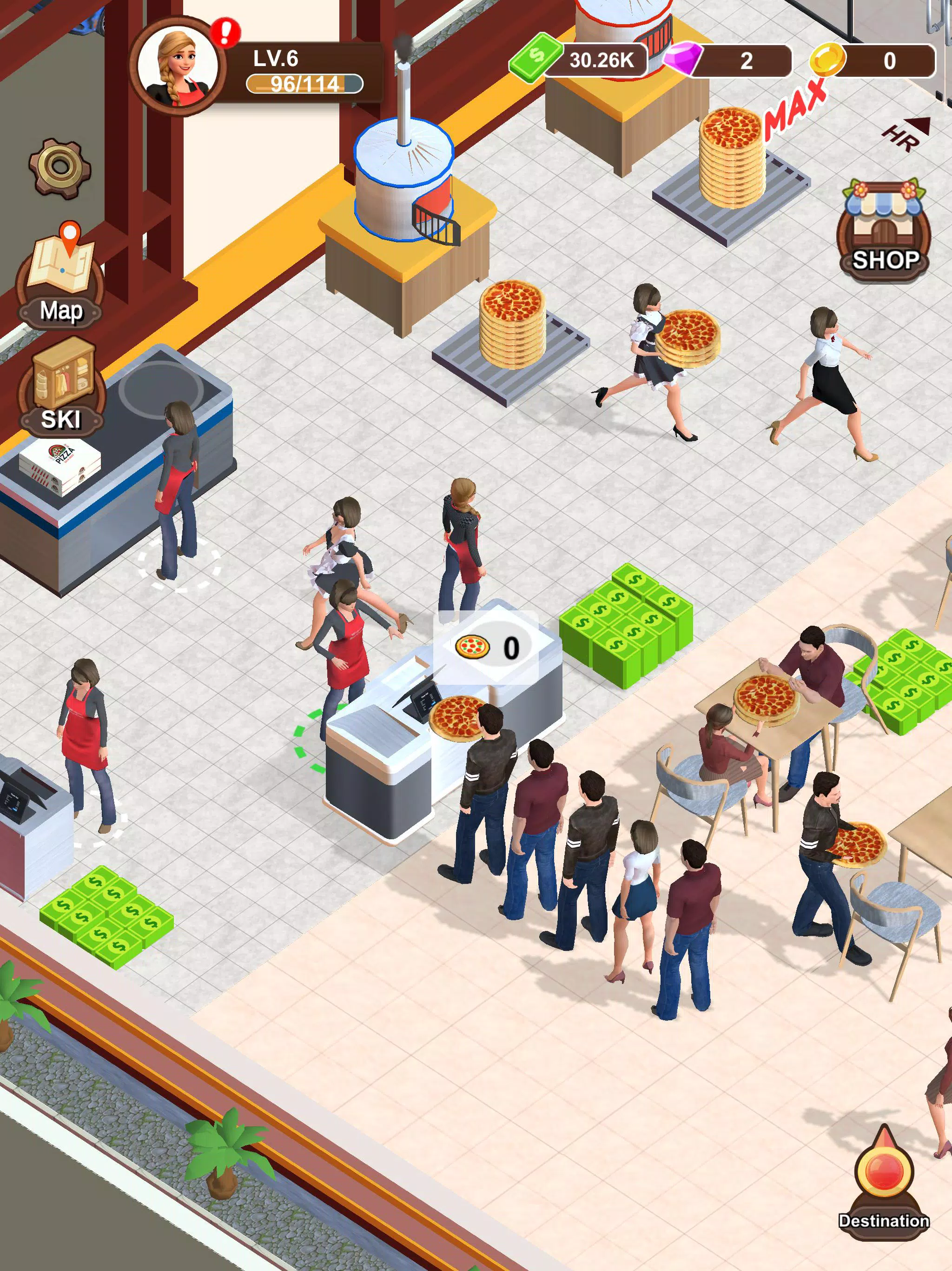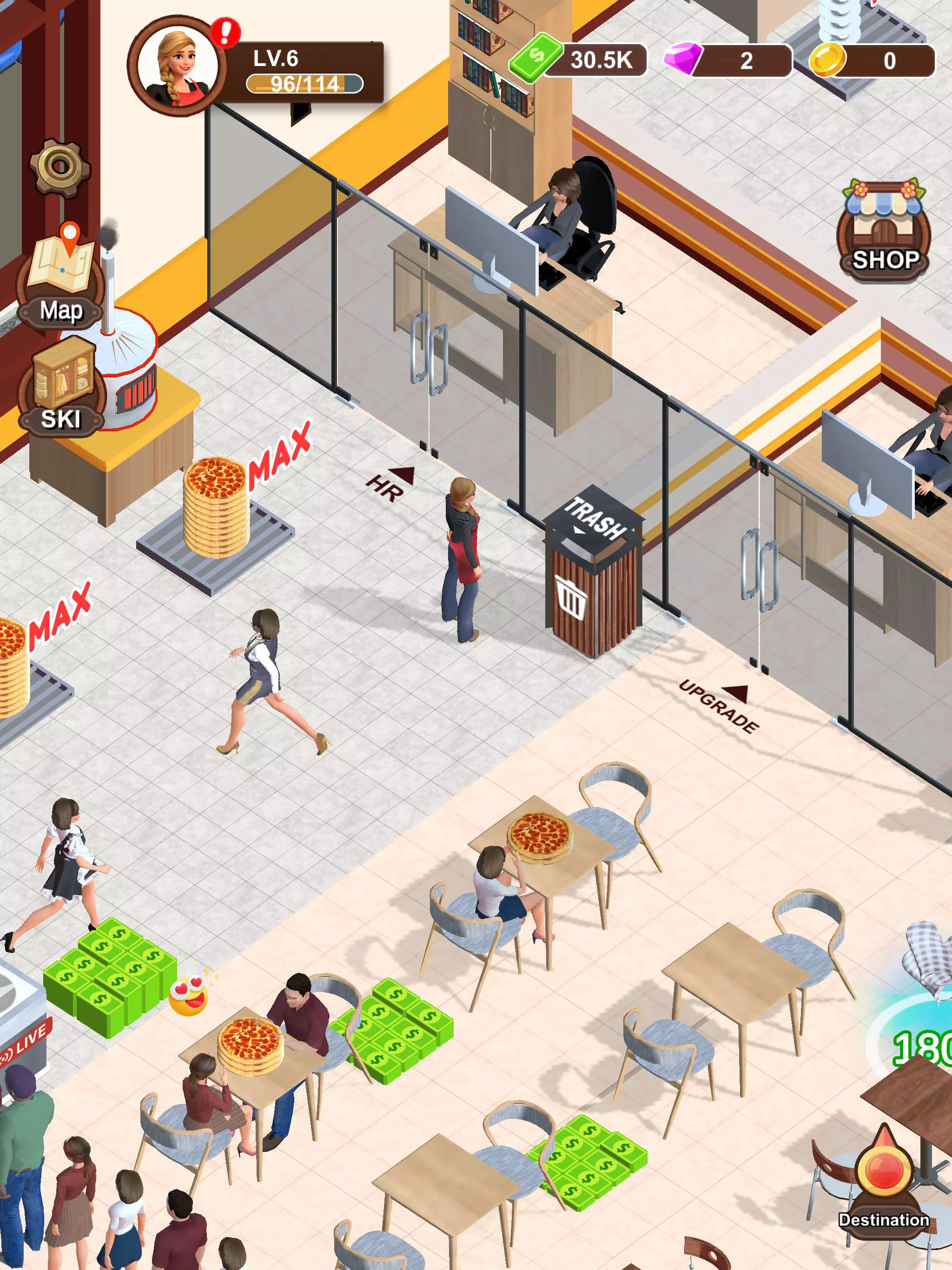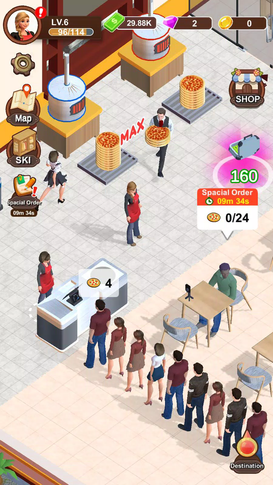 不断投资解锁高速设备、新桌子和实用功能,雇佣员工实现离线自动化——轻松从一家小店发展成为城中知名的披萨店!