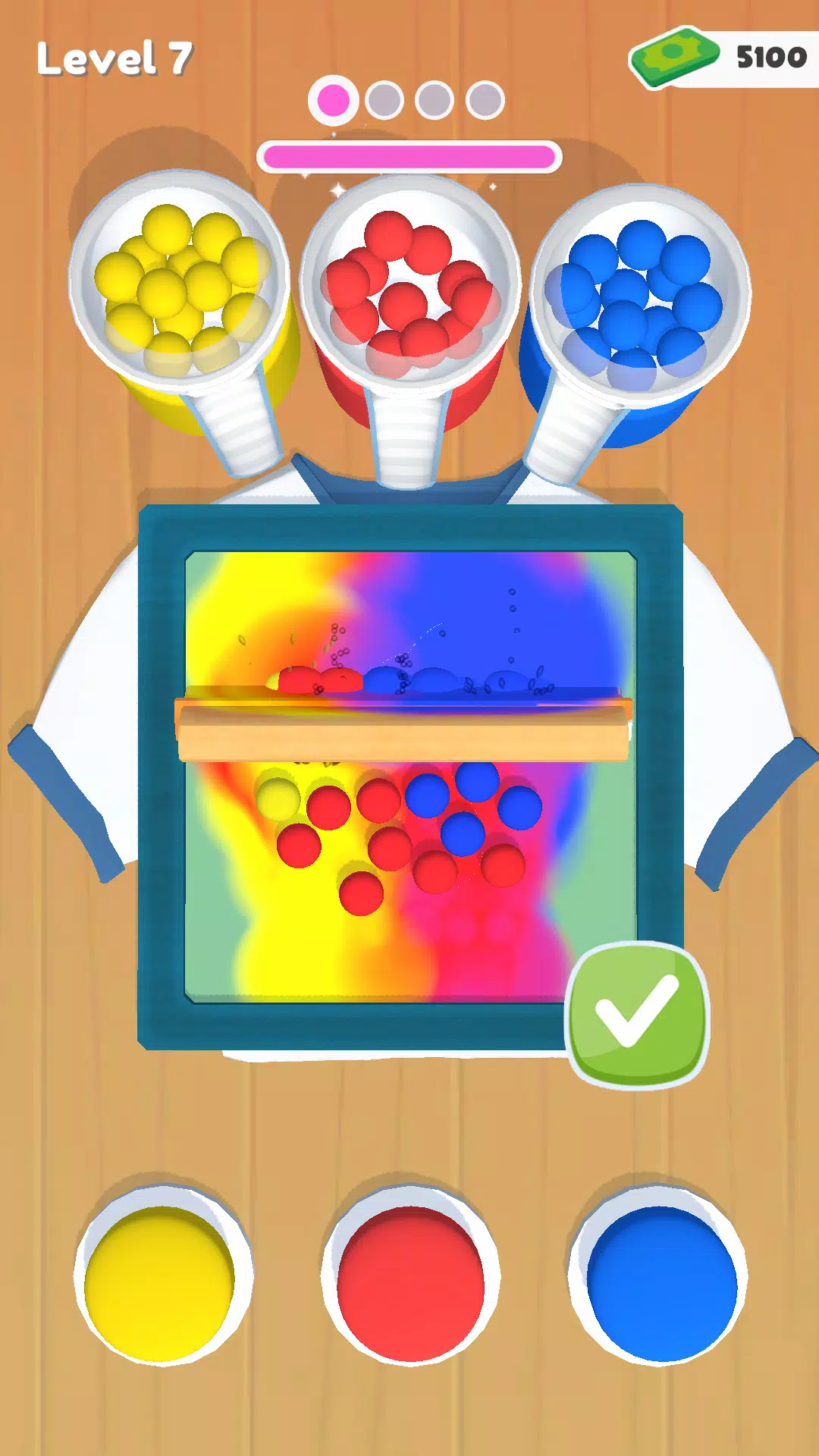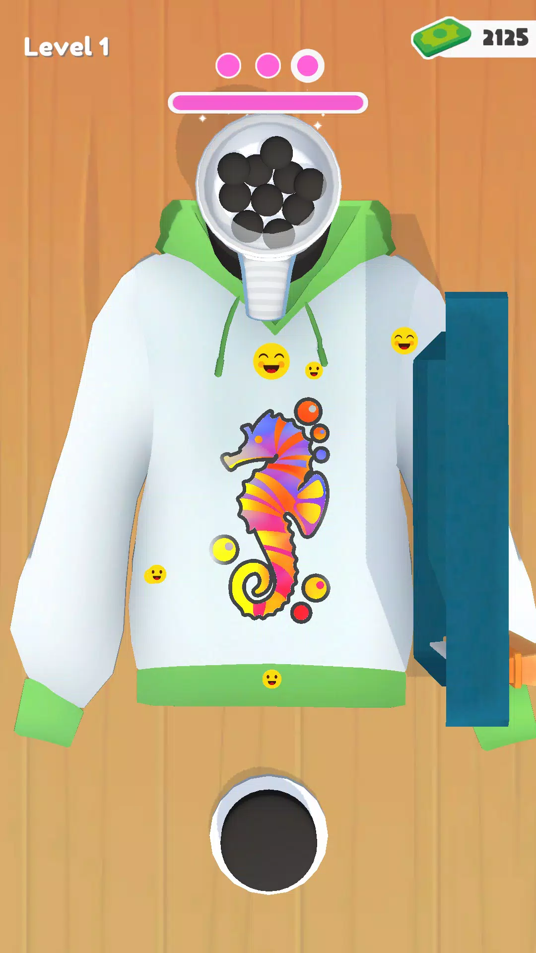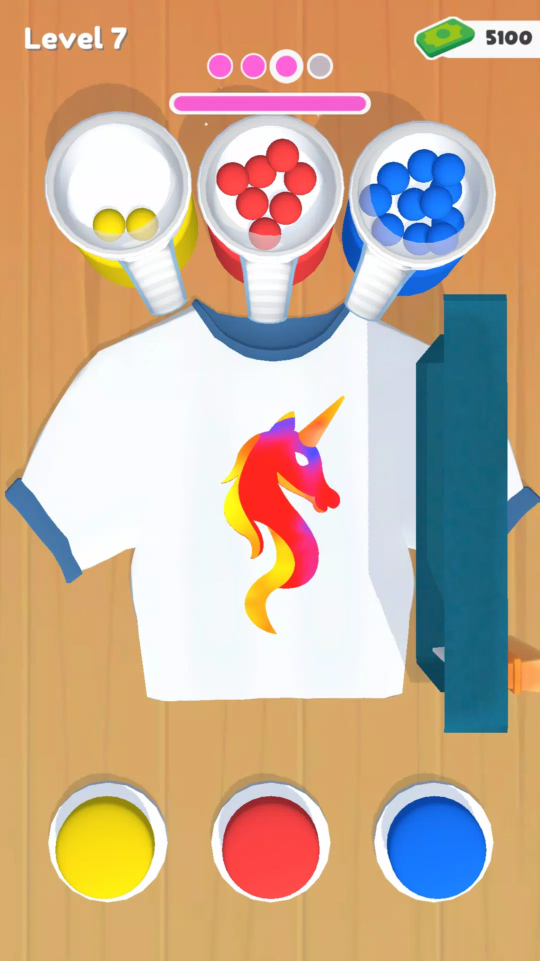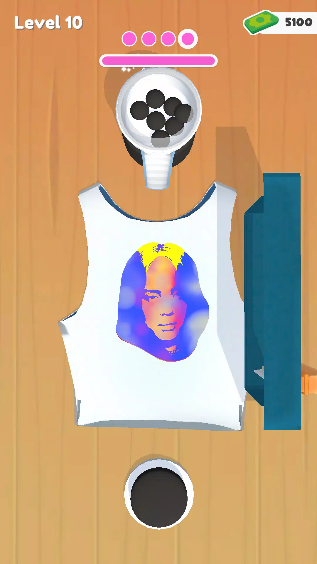 这是一款模拟游戏,玩家需要进行丝网印刷,将颜色逐层涂抹在T恤、裙子、包包等物品上。 * 点击:发射彩弹并将其击碎 * 旋转:将颜色涂抹在布料上。