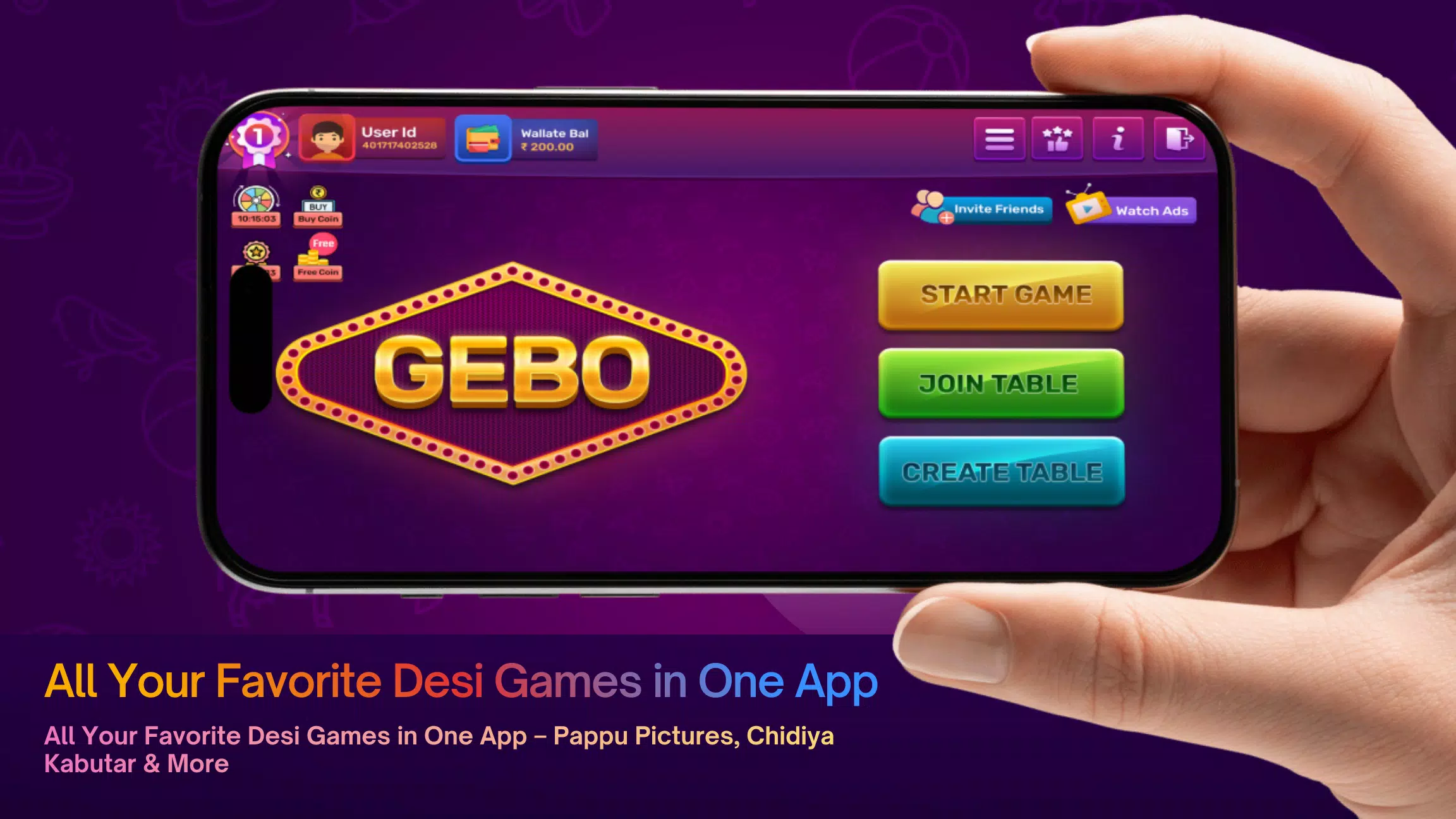 欢迎使用 GEBO 游戏图表,这是一款融合了经典图表游戏和趣味技巧游戏的终极移动平台,灵感源自印度传统娱乐。这款应用汇集了众多广受欢迎的经典游戏,例如 Pappu 游戏、Pappu 玩画、Chidiya Kabutar 游戏、Sorat 游戏、Sorat 图表游戏和 Titli Kabutar 游戏,为您带来流畅便捷的游戏体验。