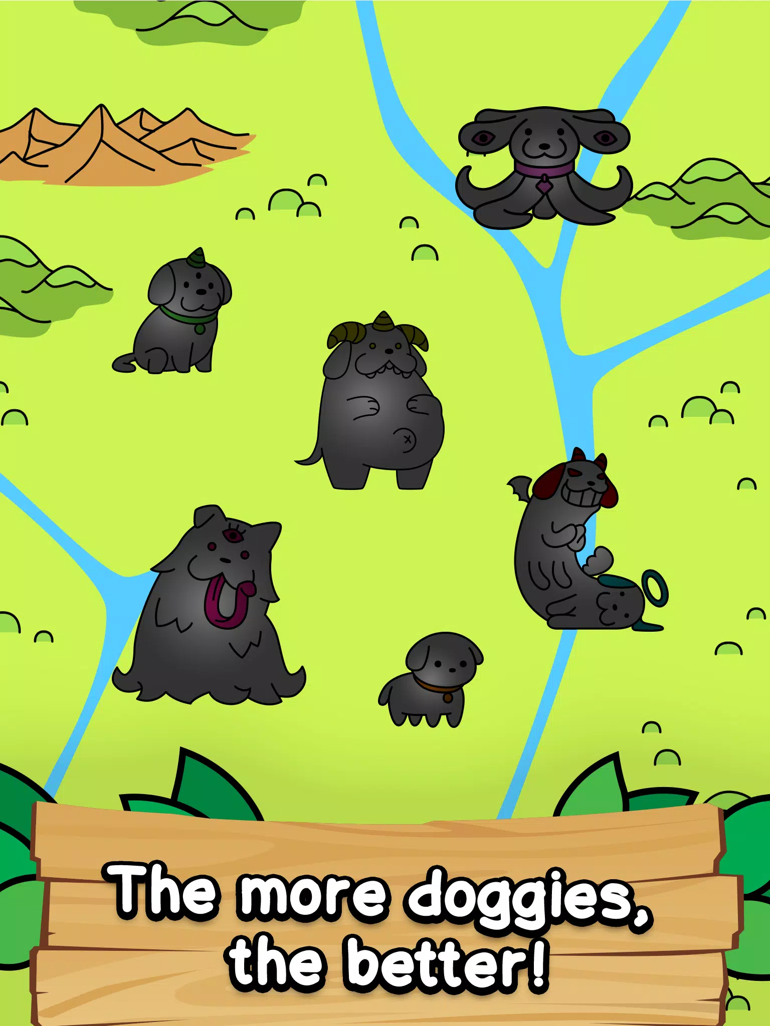 腊肠犬、比格犬、柯基犬和猎犬都已经过时了。进化后的狗狗应该多长一两只眼睛,这样它们才能更有效地照看人类朋友,或者戴上一个方便的号角,以防它们在酒吧里与变异独角兽发生冲突。你的职责就是放出狗狗,帮助它们进化!