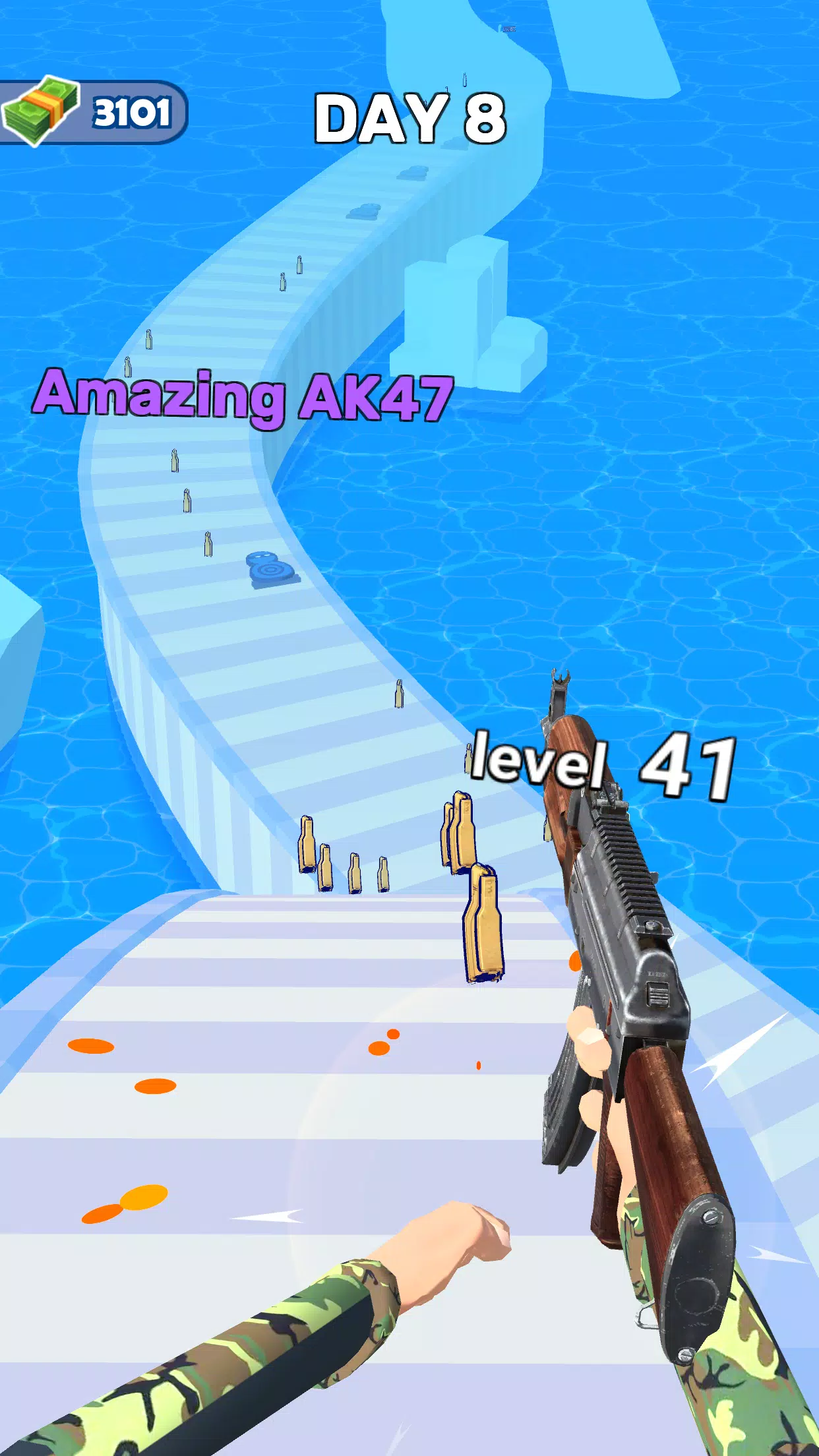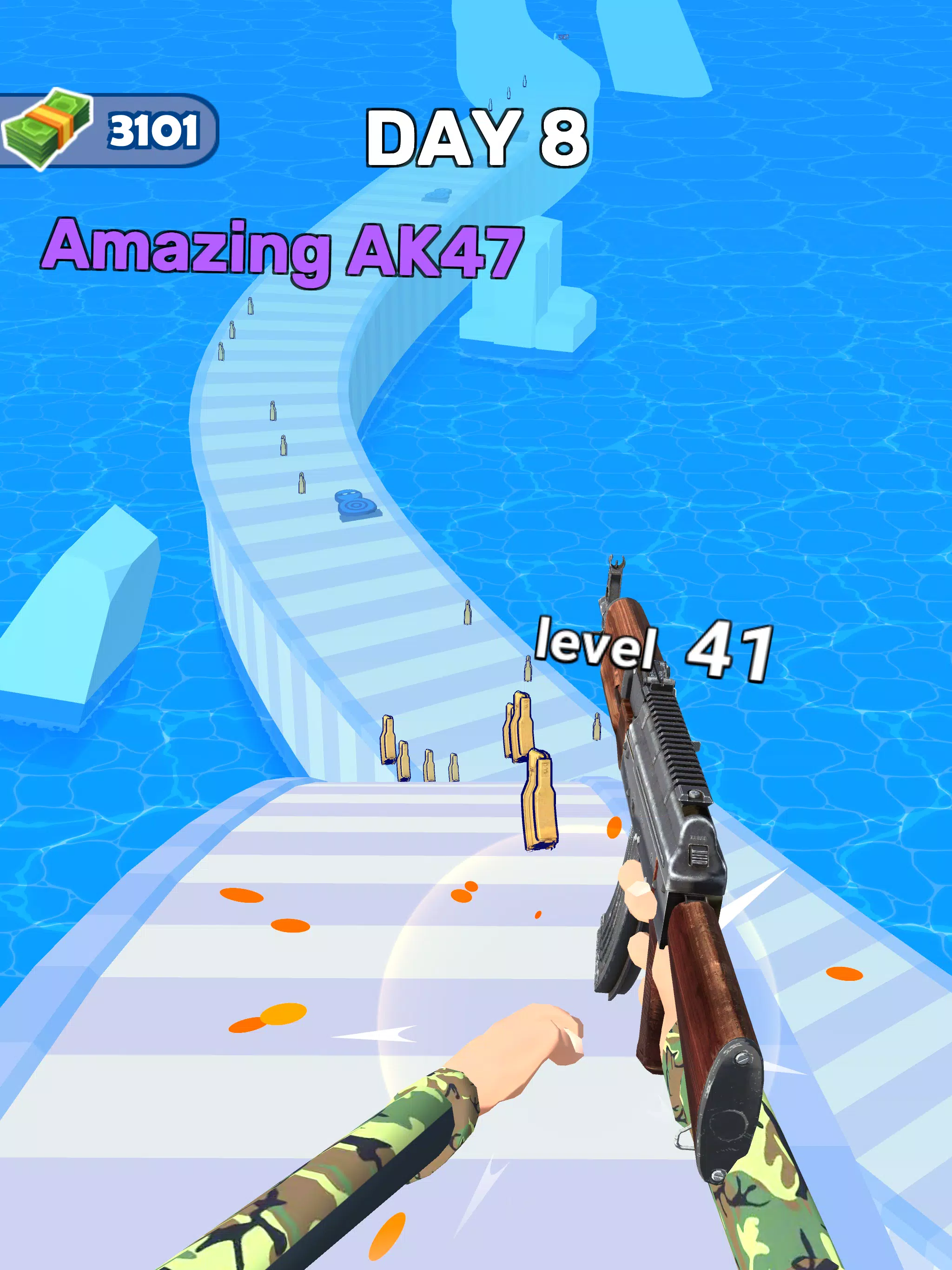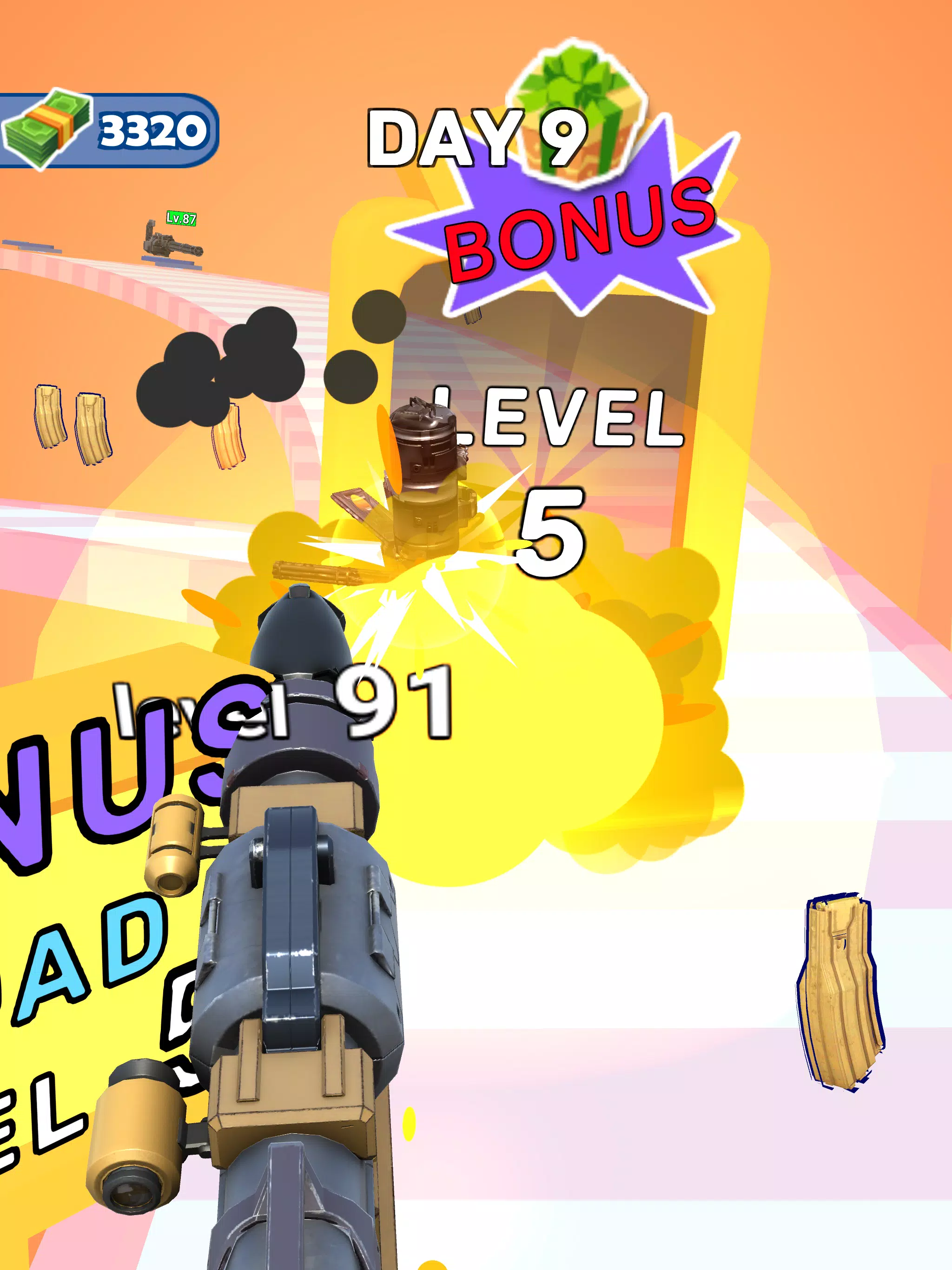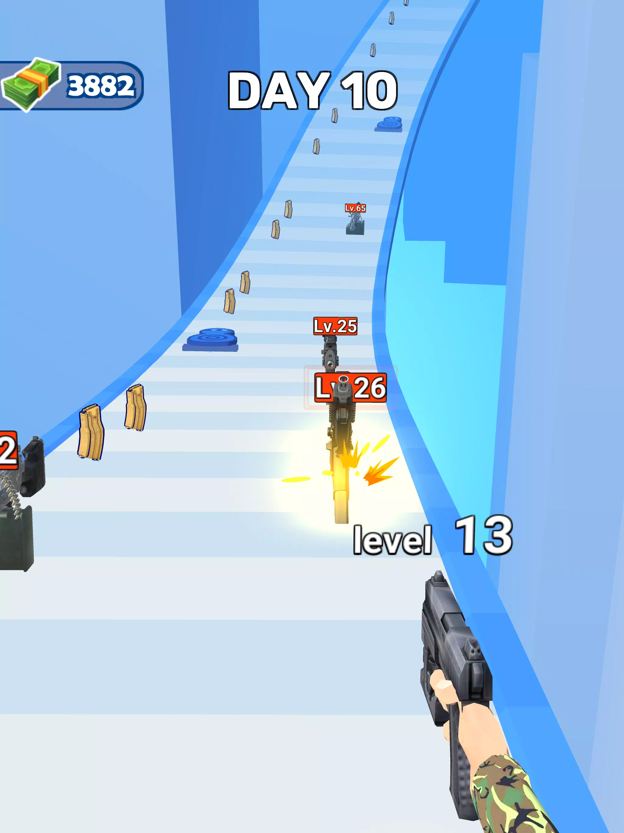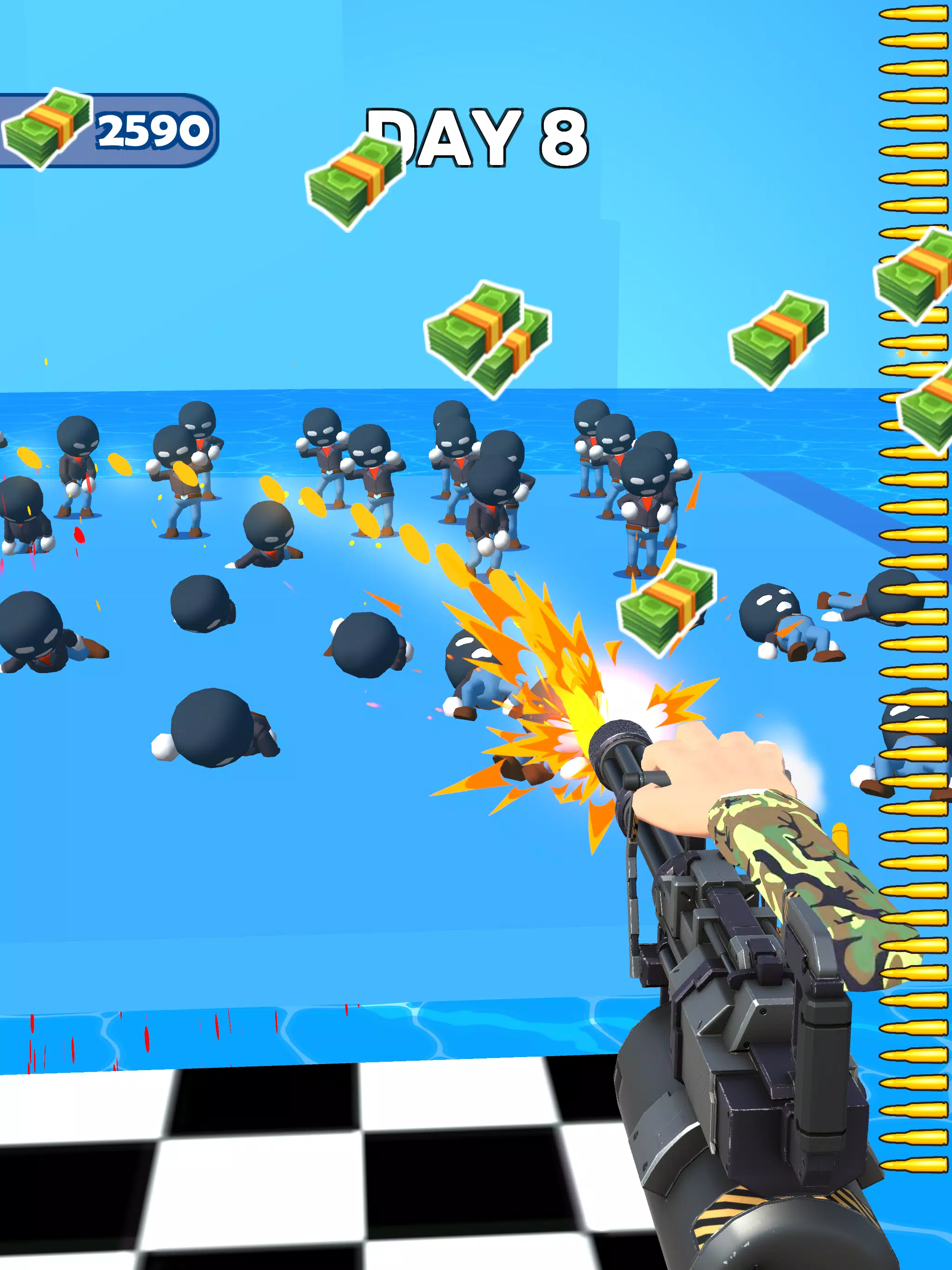从一把小手枪开始,他不断收集弹药。一路击败其他枪支,然后升级。直到拥有最强大的那把。