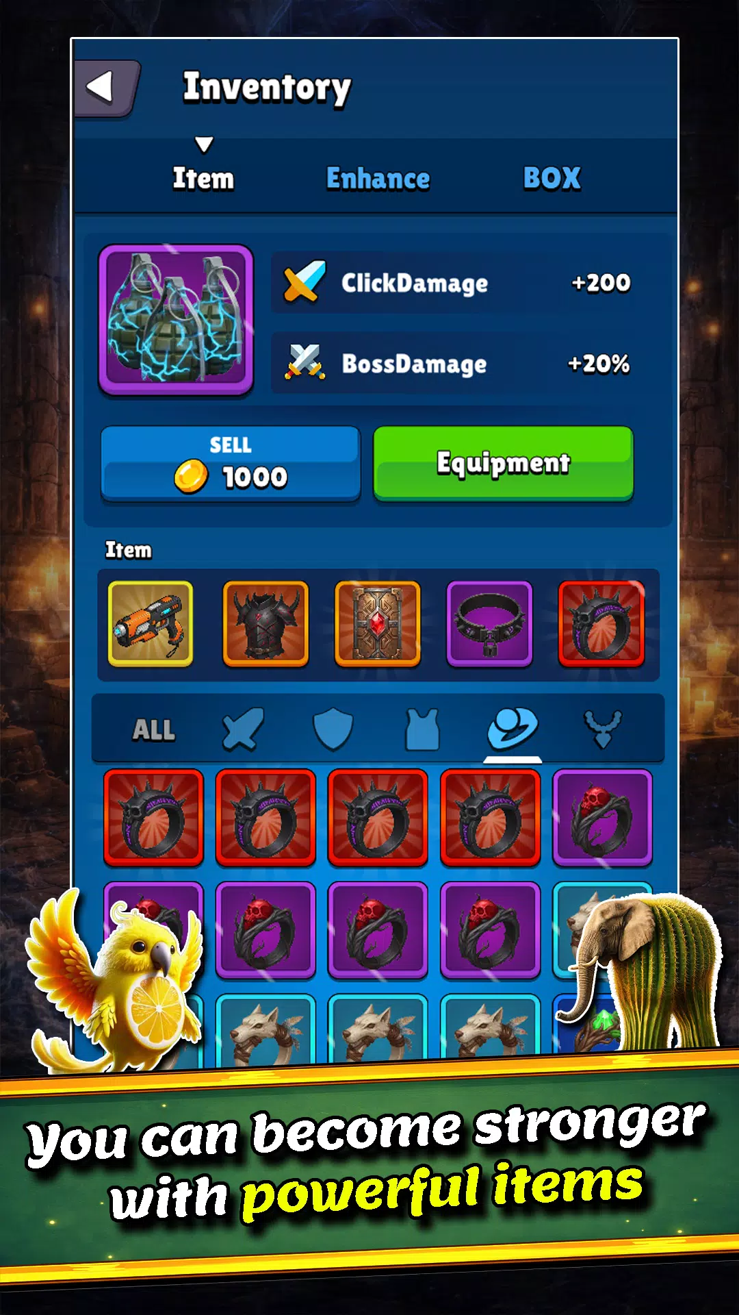 普通的点击还不够。你需要最好的装备!使用扭蛋系统抽取高级装备。为你的角色装备传奇物品,倍增你的实力。每一次抽取都是改变命运的机会!
