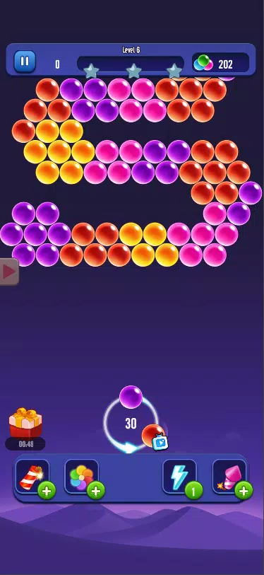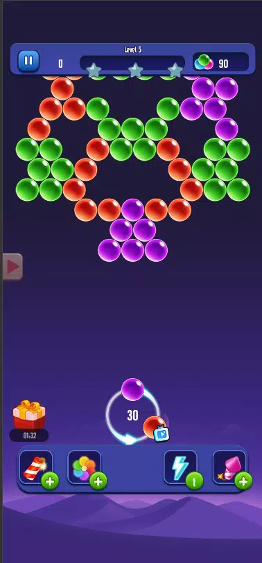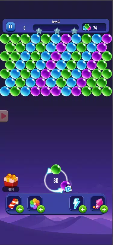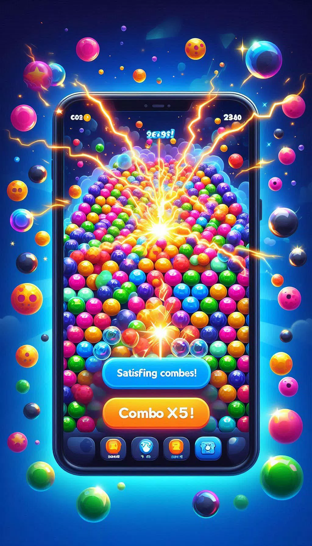 🔴 经典泡泡射击玩法 匹配三个或更多泡泡即可消除!策略性思维是通关的关键。使用彩虹球和炸弹等强力道具,轻松过关。游戏上手简单,精通却极具挑战!