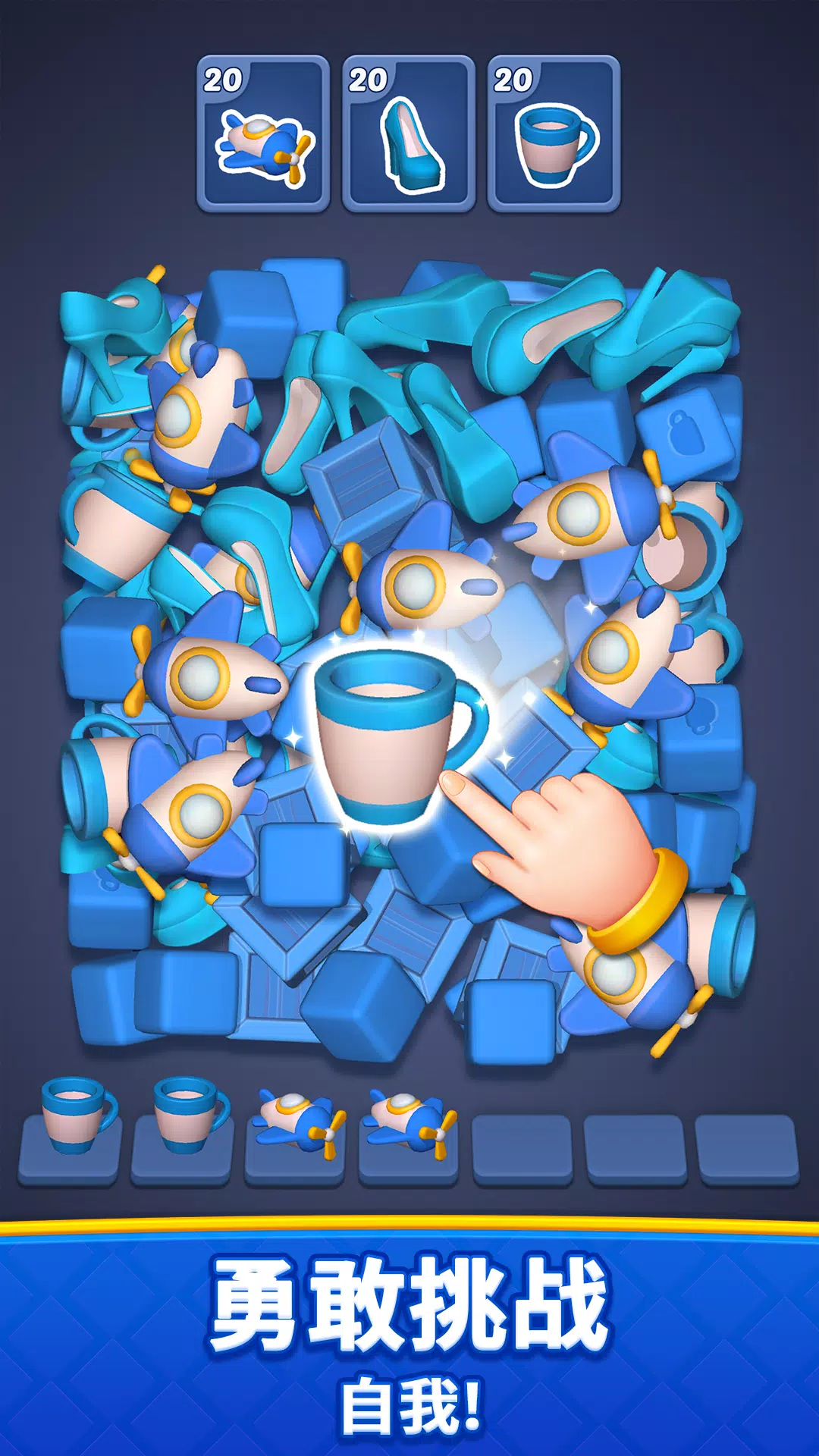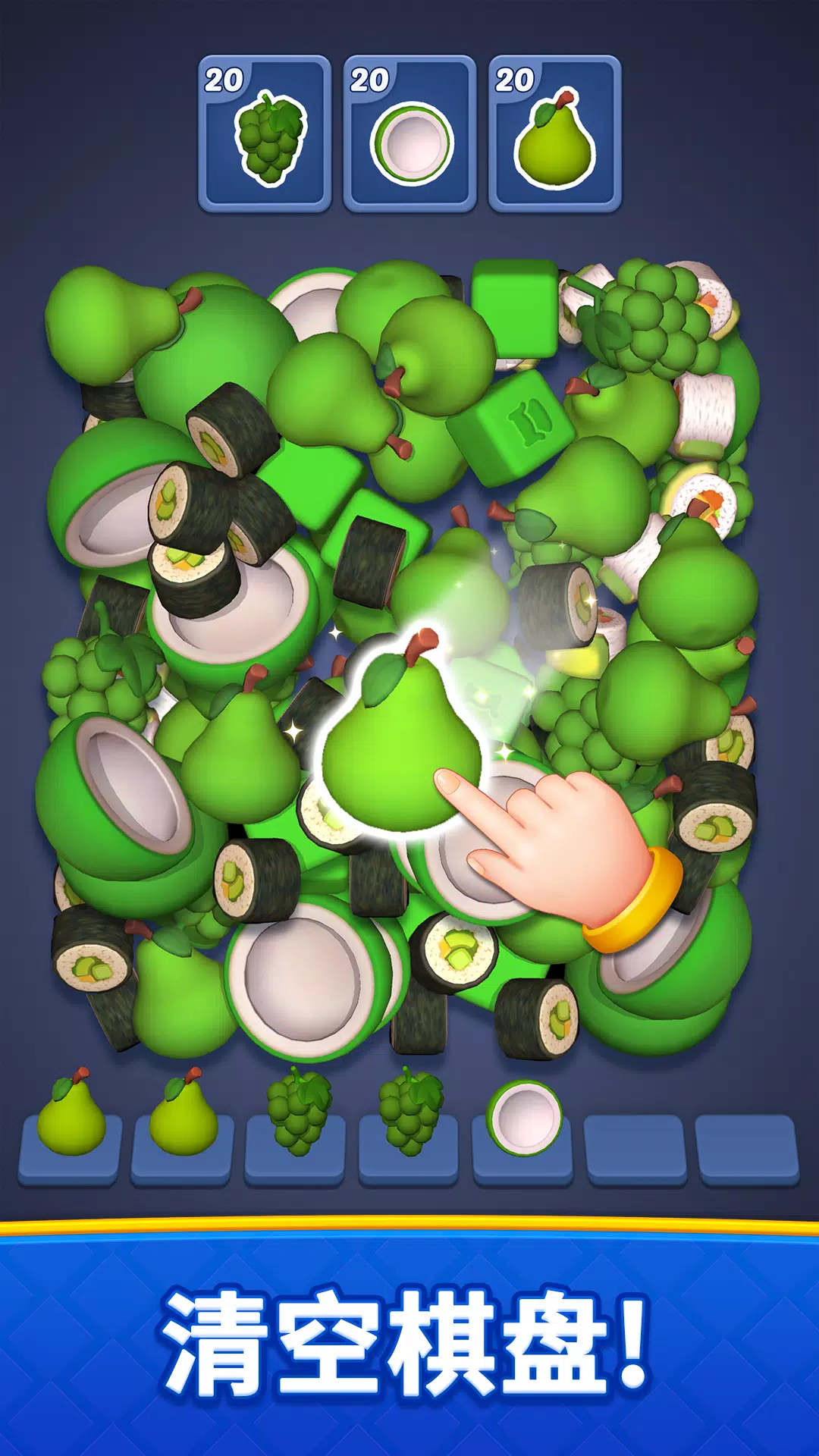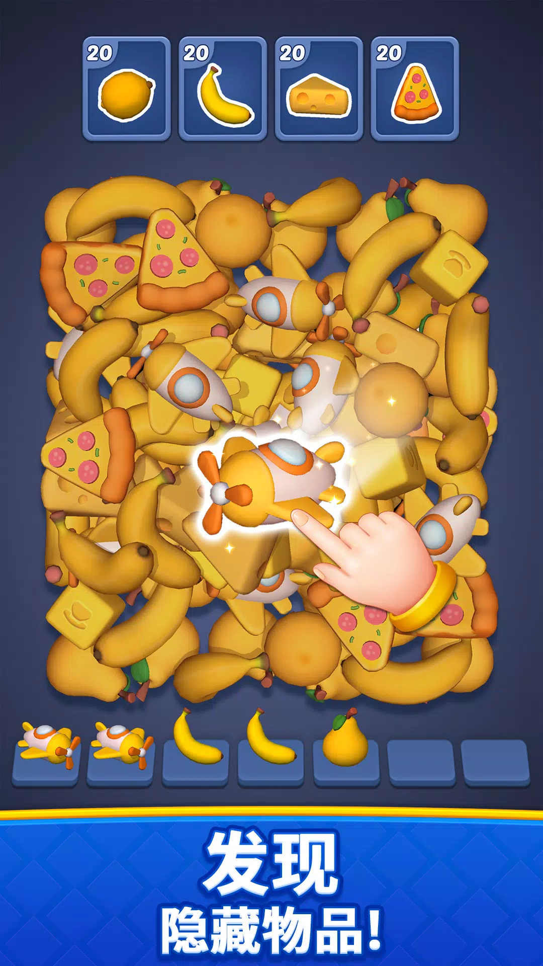 – 点击三个相同的物品将其收集。