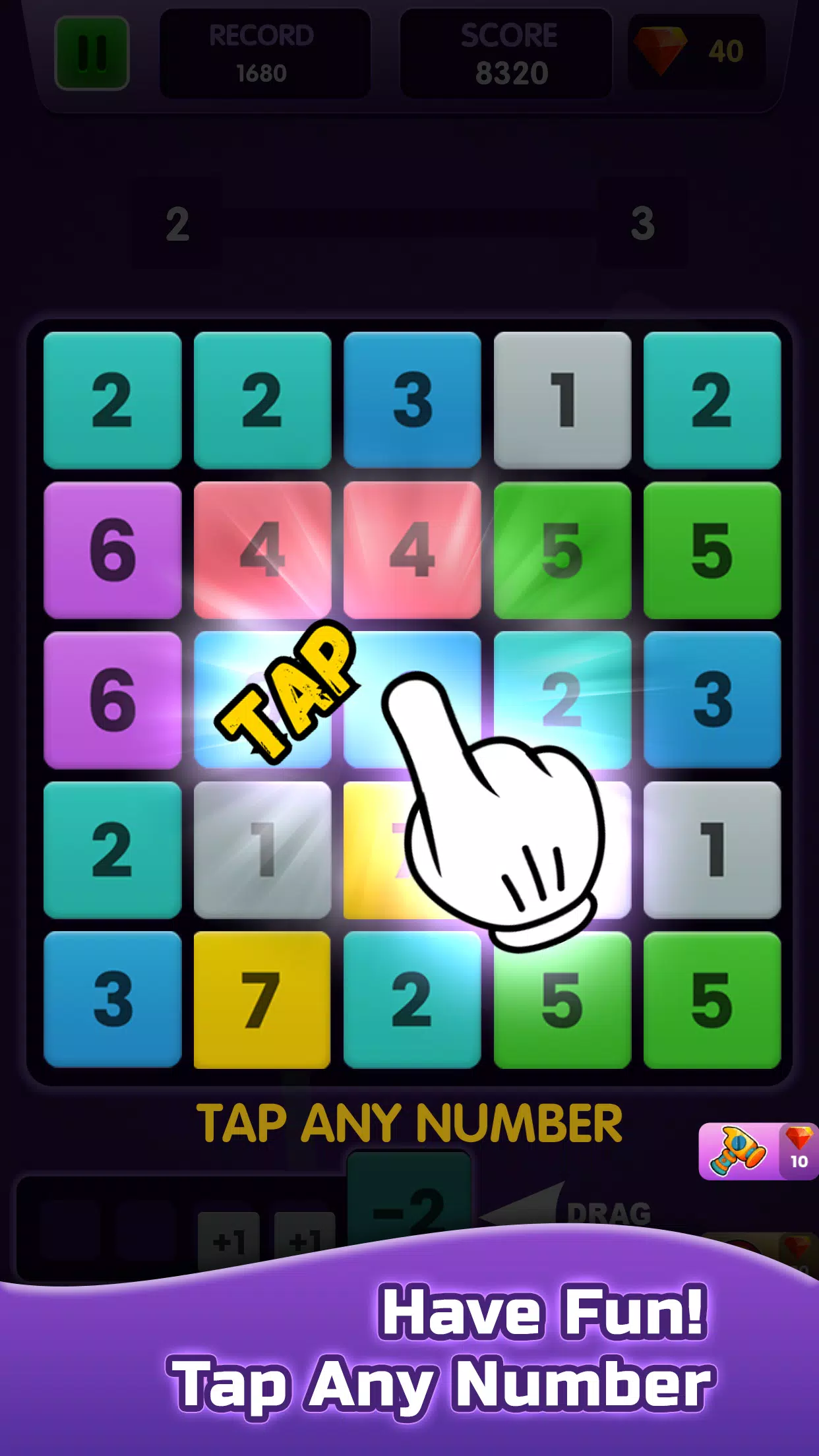– 您可以使用锤子或星星消除方块,并通过一次合并更多数字来获得更多积分。