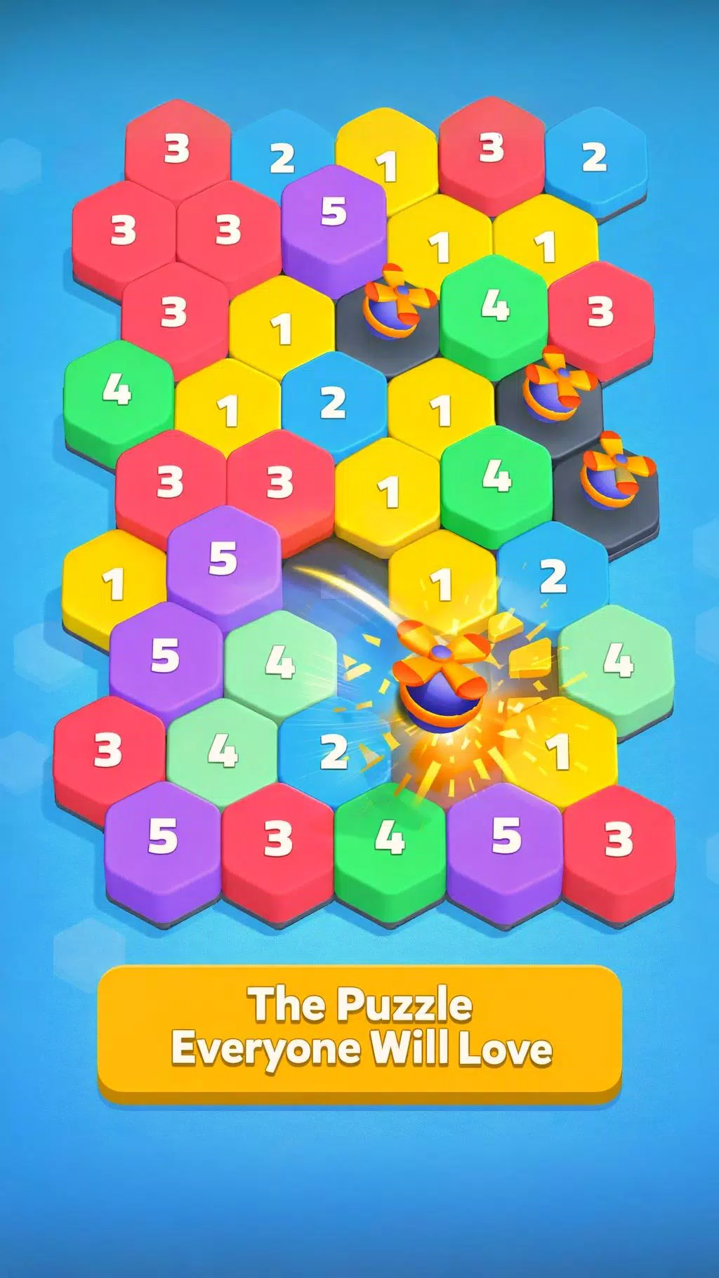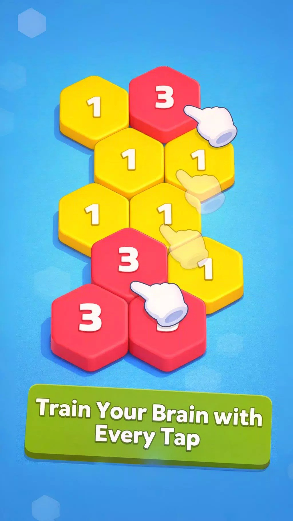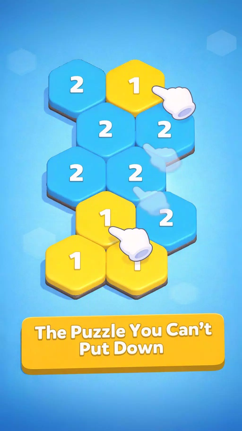 点击一个六边形方块——所有与其相连的同色方块都会升级。看着数字变化,棋盘布局随之改变,连击不断累积。听起来很简单?确实如此。但并非总是如此。