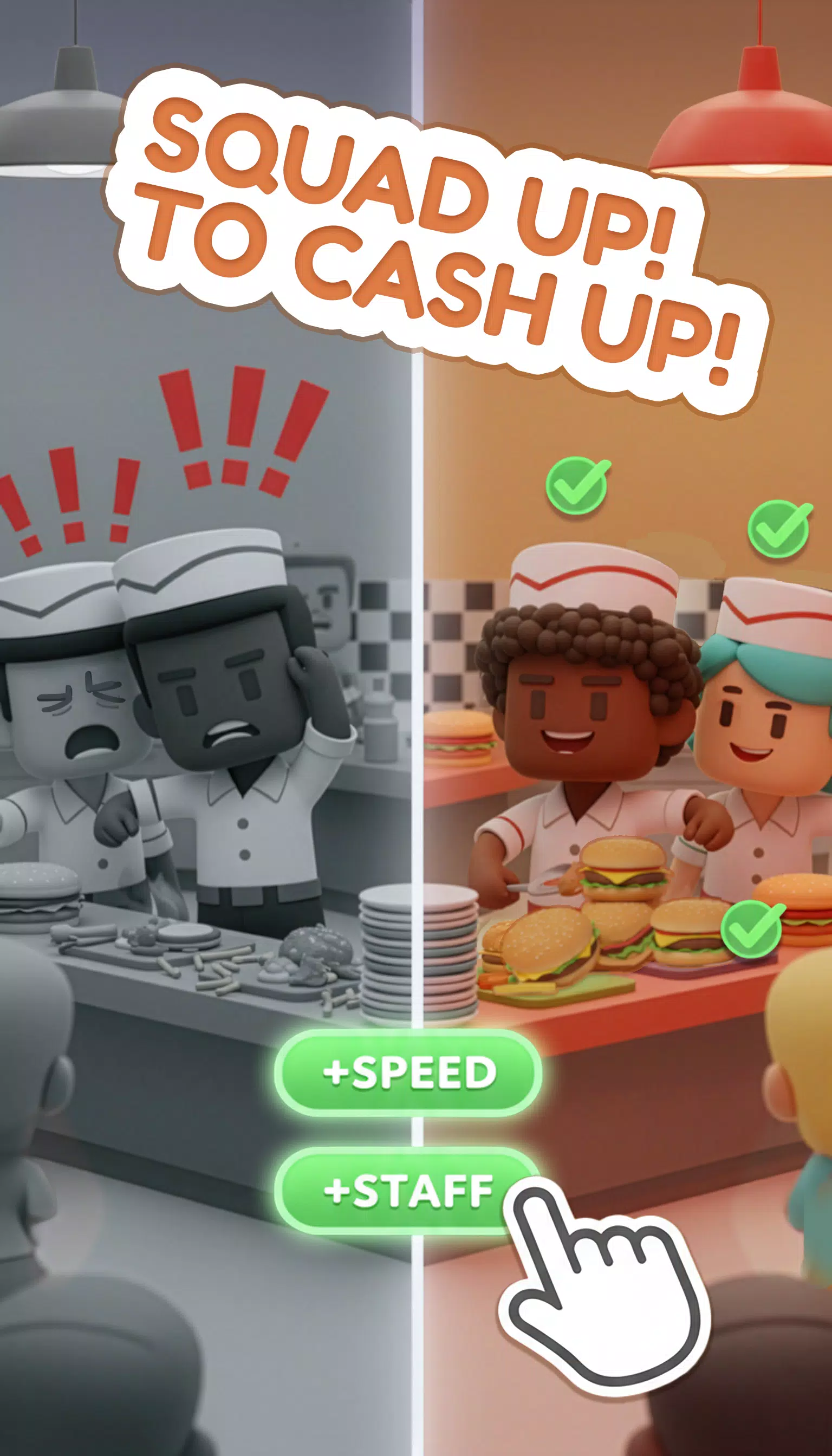 快速接单,准备美味的汉堡、薯条、饮品等等,然后在顾客失去耐心之前将它们奉上。速度越快,小费越多!