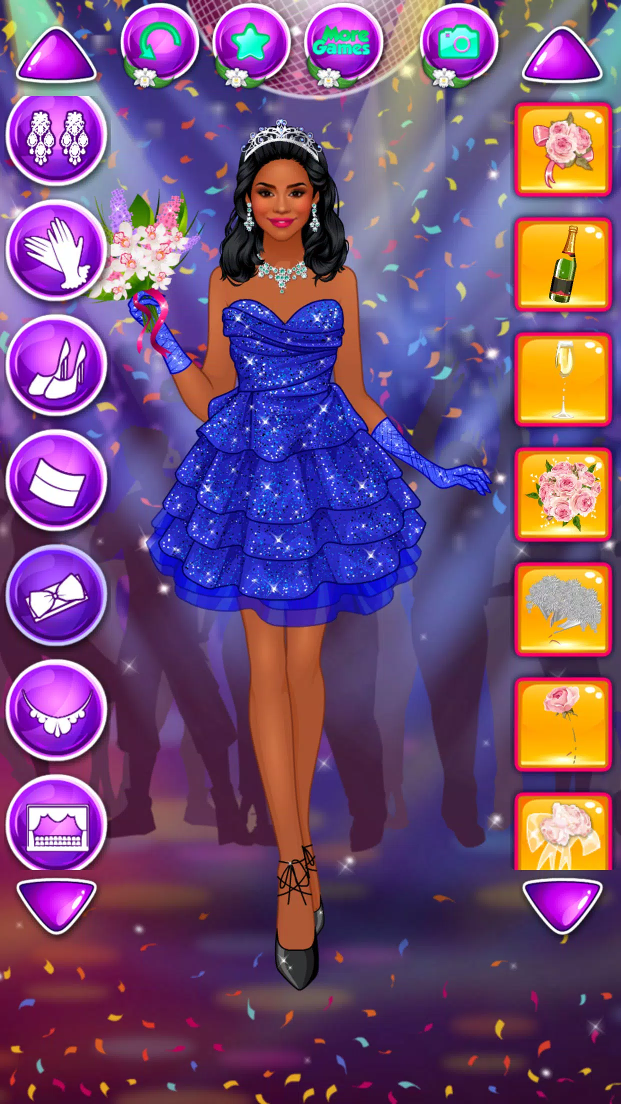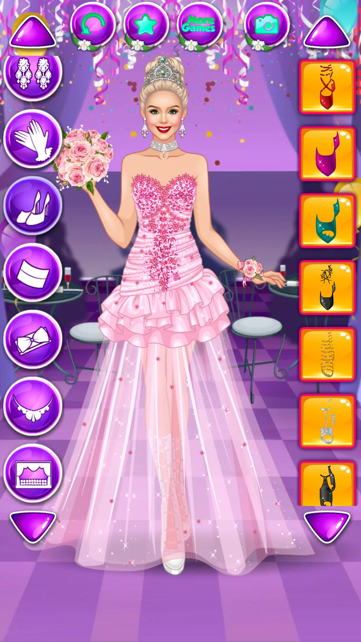 既然你是個具有時尚感且累積多年的造型改造經驗的時尚專家,你現在成了她們的時尚設計師,所以你將決定每個女孩的命運。誰將會被選為舞會女王呢?身為花俏服飾美容院主人的你將決定一切。