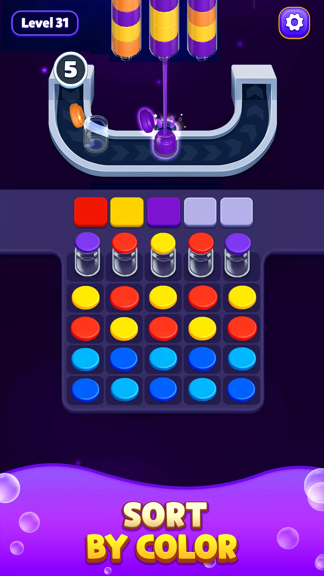 沉浸在充满管道、瓶子和鲜艳色彩的水中,体验这款令人愉悦的色彩排序益智游戏。你的目标很简单:按颜色对水进行分类,但每一步都至关重要。仔细规划,合理利用空位,运用巧妙的策略通关每一关。