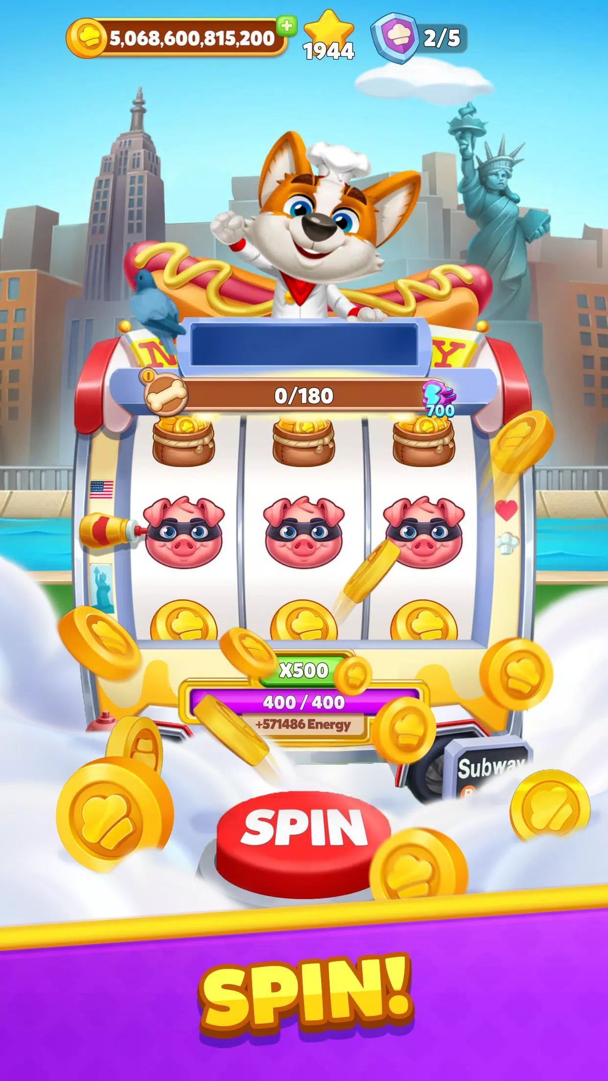 旋转每一关的独特老虎机,赢取金币、破坏、抢劫、护盾和现场活动。赢取巨额战利品,建造最棒的村庄,一路前行,探索世界美食。护盾将守护你的餐厅,免受好友的破坏。成为金币大厨,赢取最多的战利品!