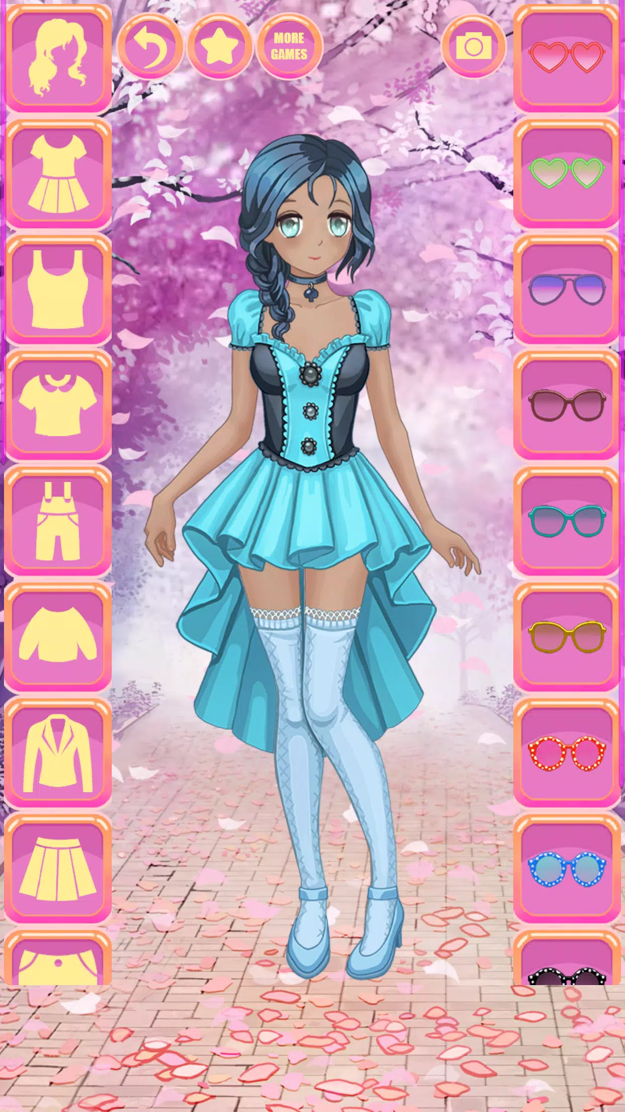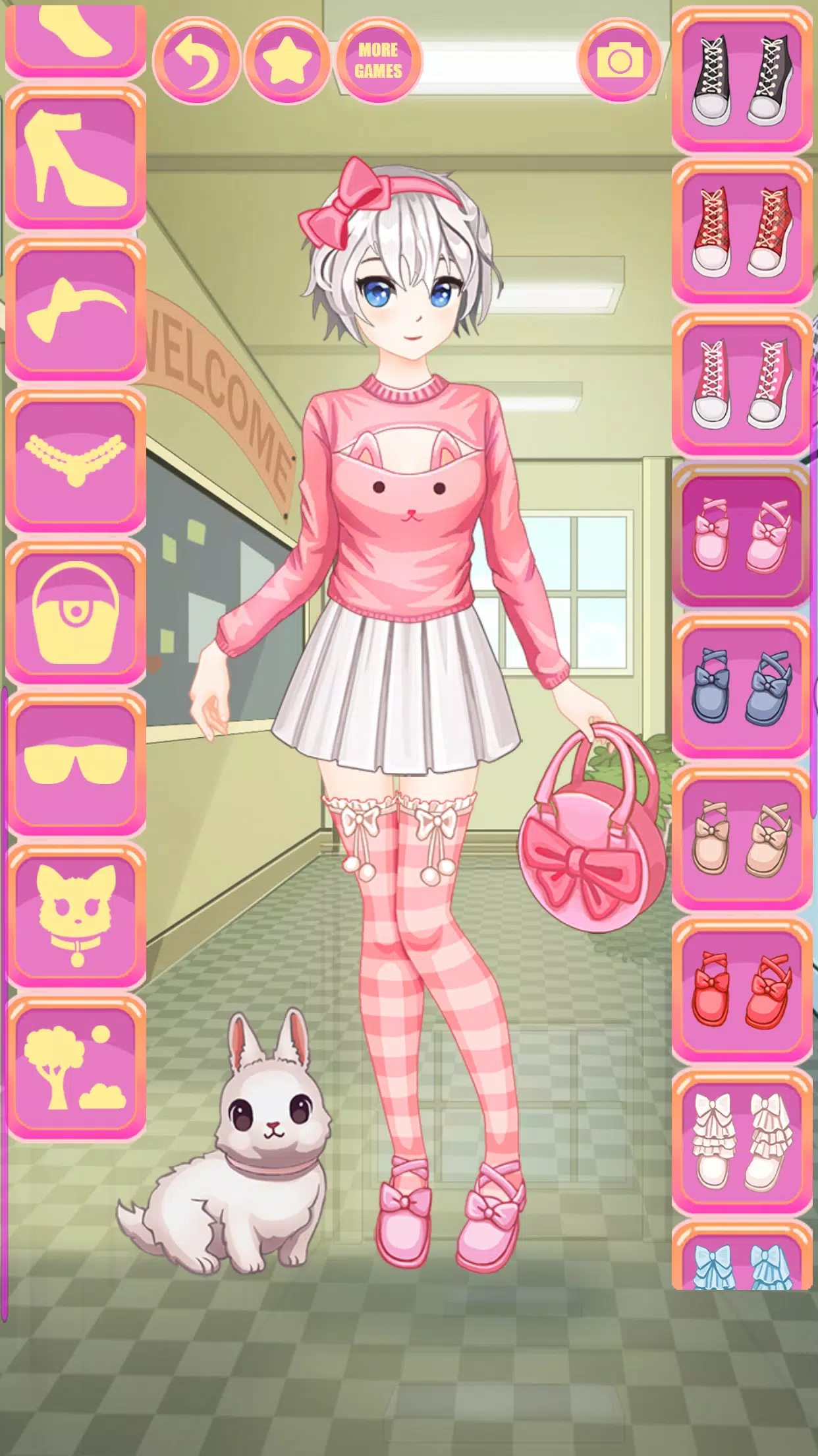 改变女孩的衣服风格和发型。选择时尚的背景,别忘了添加宠物(猫、狐狸、浣熊等)。适合儿童和青少年的最酷最可爱的动漫换衣服游戏,通过玩它,您可以训练您的造型师技能和时尚感!