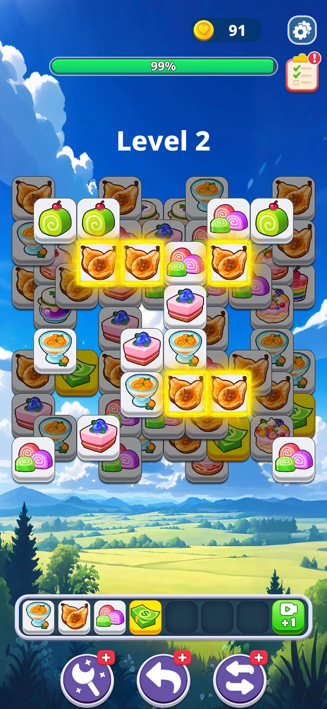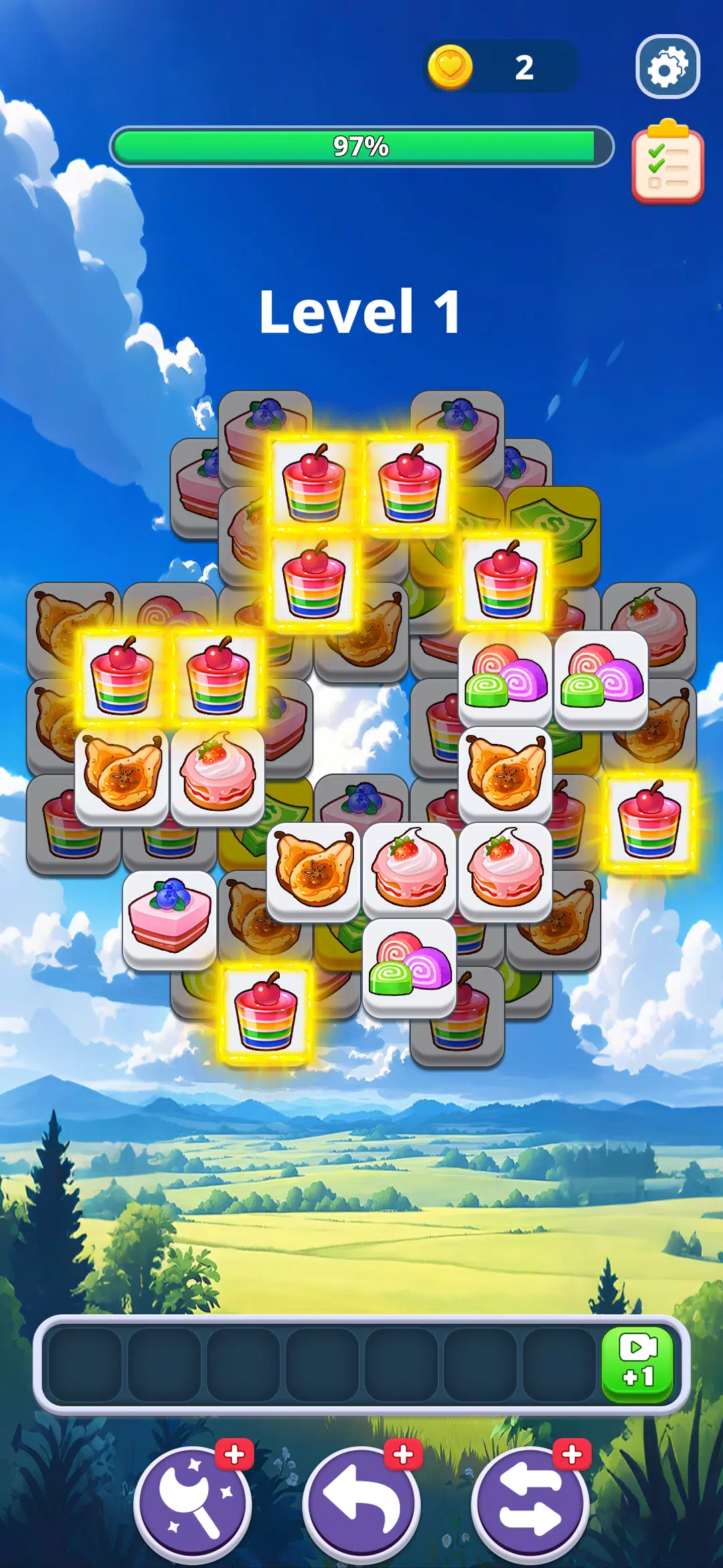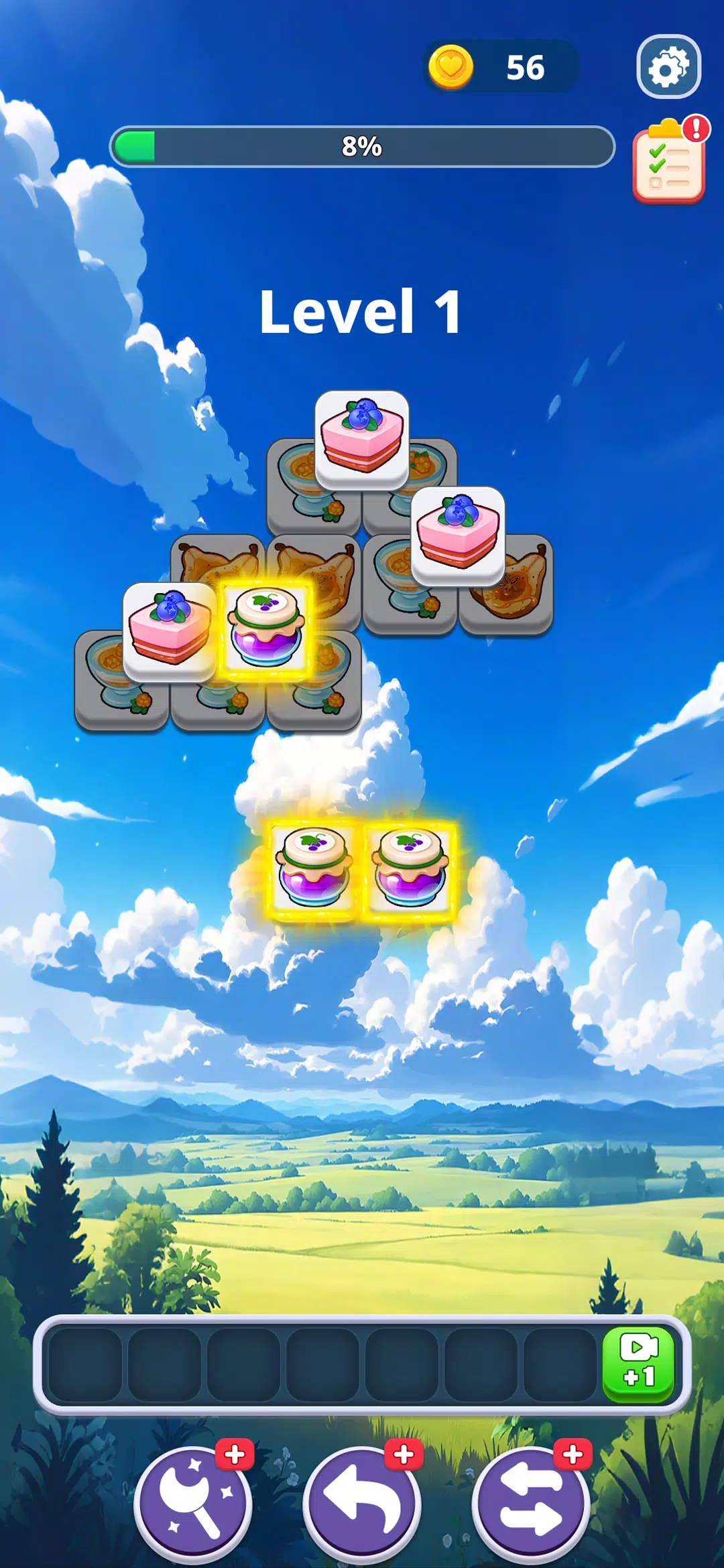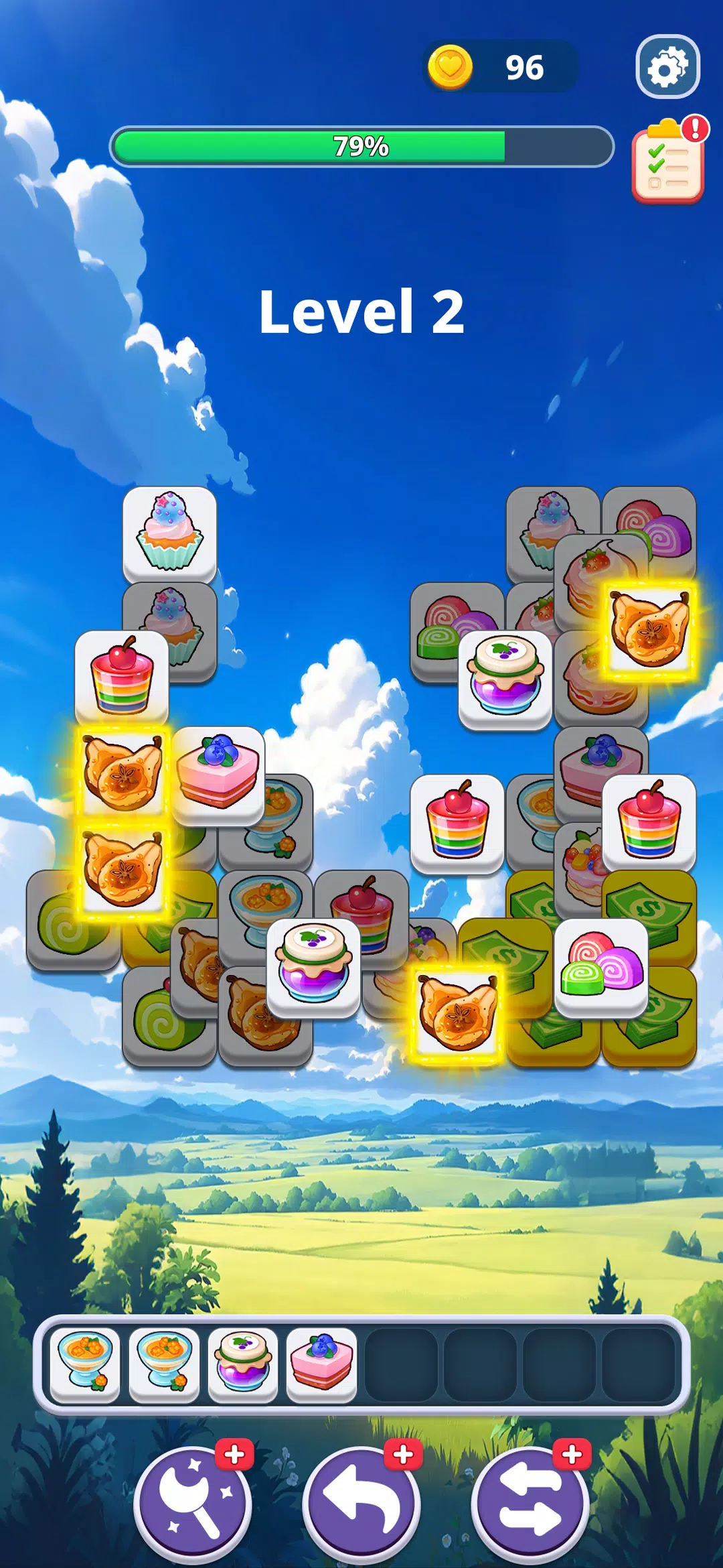屏幕底部只有 7 个有限的格子。点击屏幕堆叠甜点拼图,然后将三个相同的拼图放入格子中消除即可。层层叠叠的甜点源源不断地落下——你需要巧妙的策略和敏捷的思维才能跟上节奏。一旦格子填满,游戏就结束了!