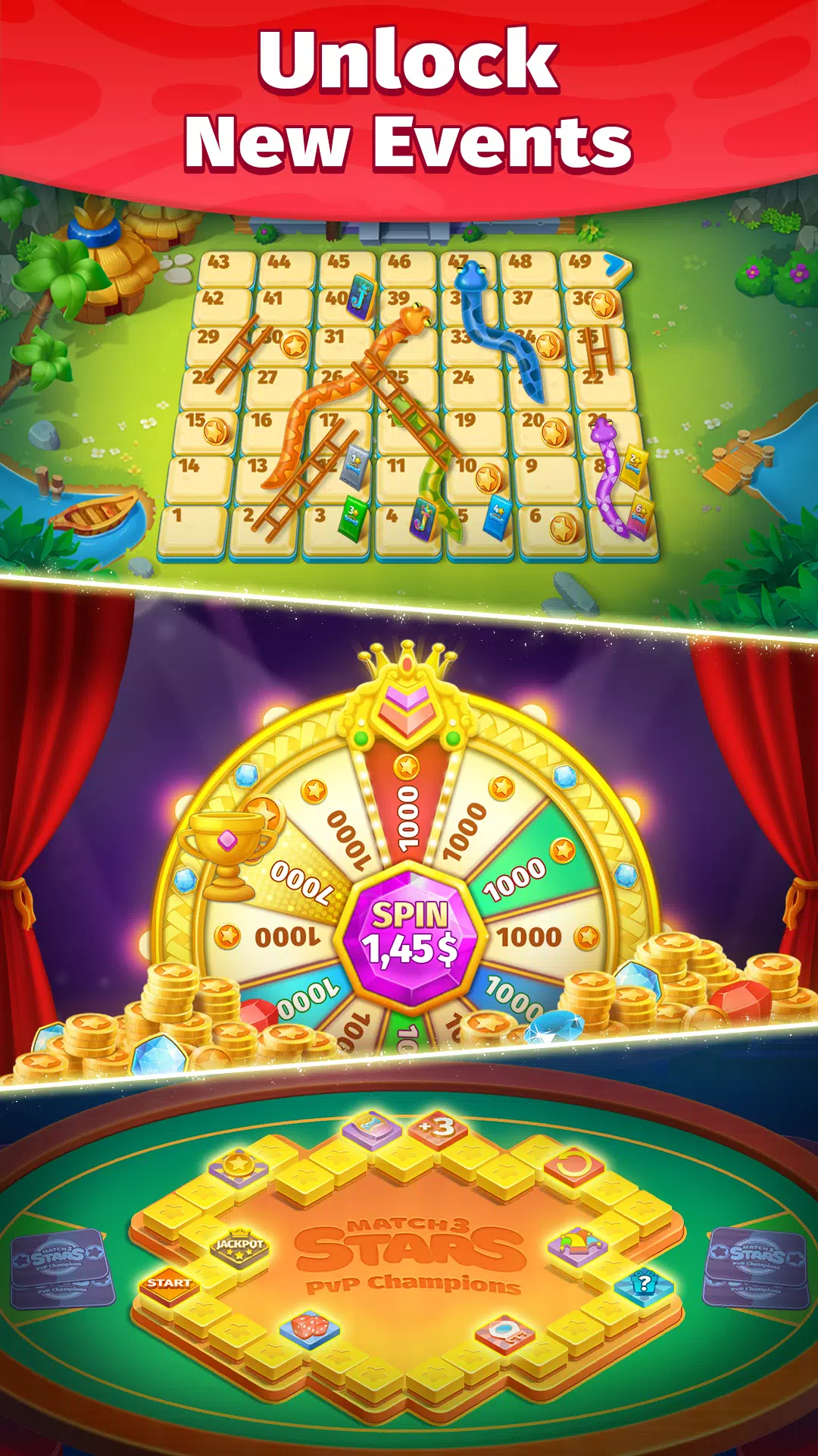 在 [Match 3 Stars: PvP Champions] 中,玩家在同一块三消游戏板上进行对战,拥有各自的回合,因此您不仅要关注对手的得分,还要关注对手可能为您创造的机会!立即获取免费游戏,畅享 PVP 解谜冒险!