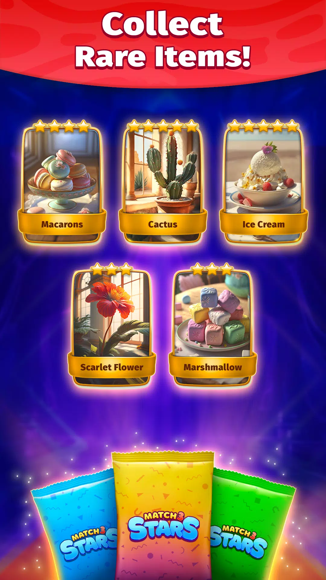 体验这款不同于其他多人游戏的全新三消游戏。快来畅玩这款游戏,与好友或对手对战。[Match 3 Stars] 是一款充满乐趣且刺激的免费 PVP 三消游戏!