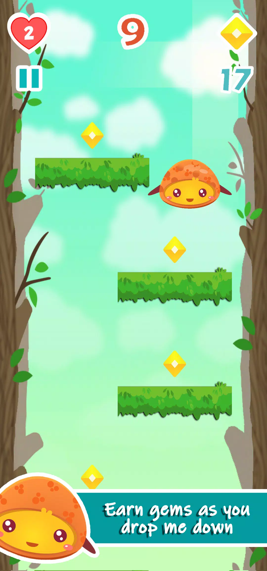 – 使用宝石从掉落的平台重新开始游戏。