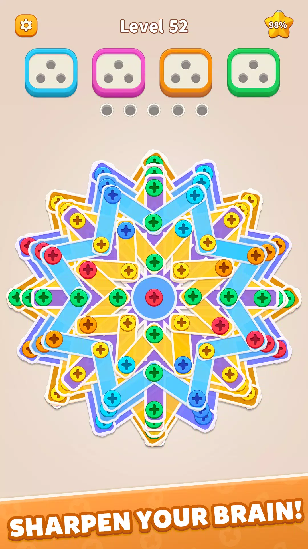 你能解开所有螺丝钉拼图,清除所有卡住的螺丝,并整理好每一颗木螺丝吗?加入众多热爱这款离线逻辑挑战的益智游戏爱好者行列,体验解锁、思考和解谜的乐趣。这是一款专注于螺丝钉的益智游戏,也是一款纯粹的逻辑脑筋急转弯。