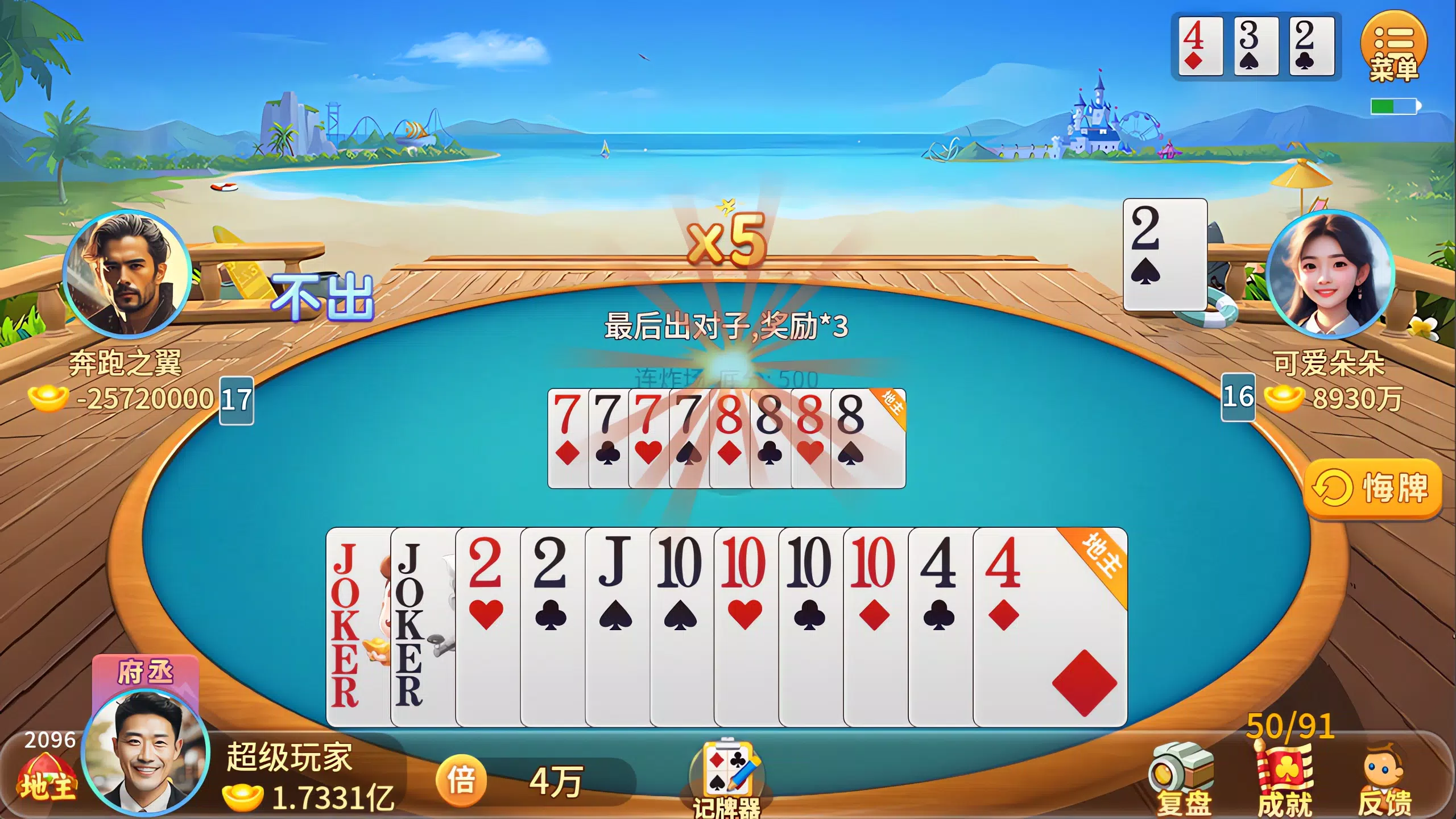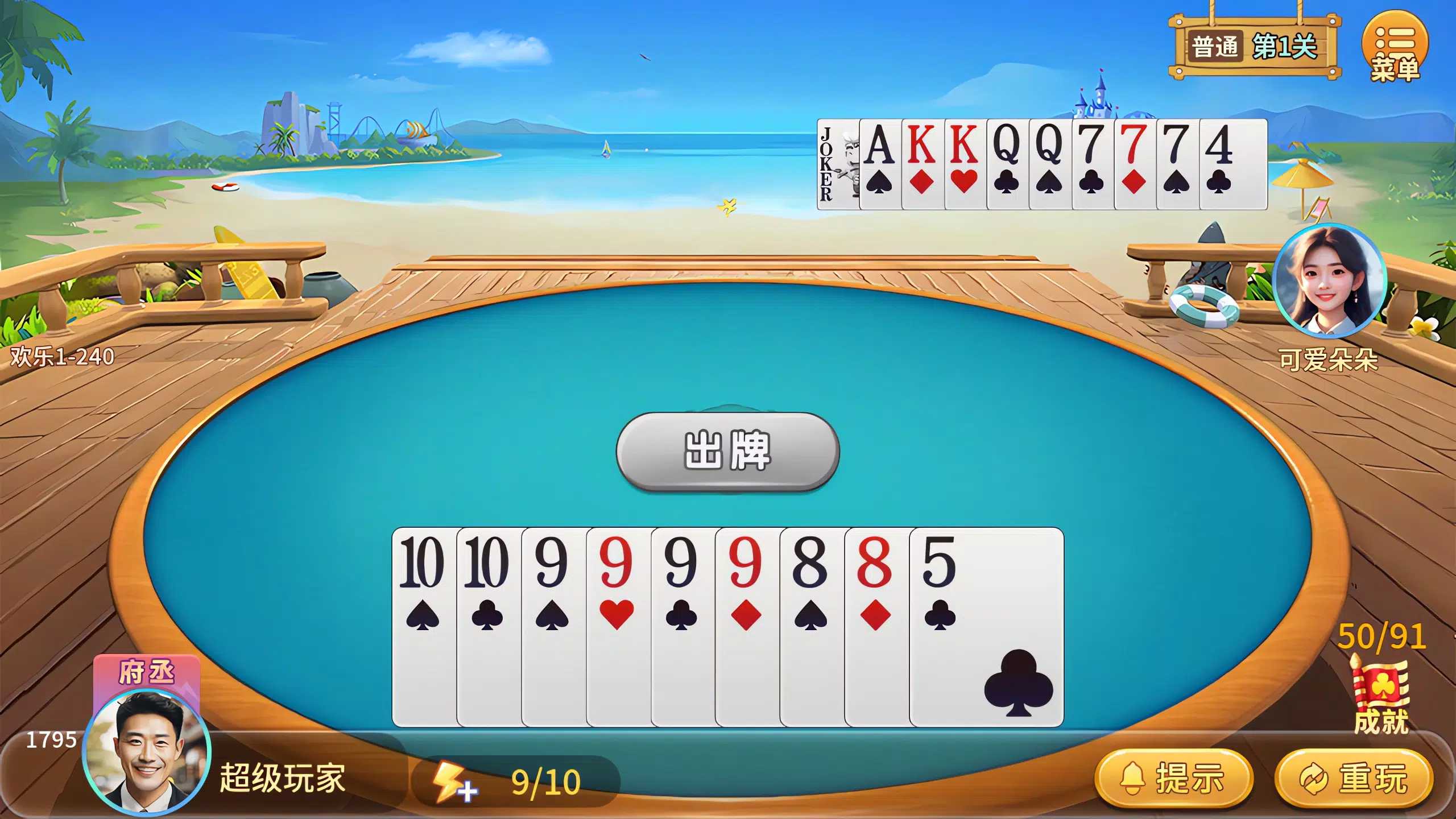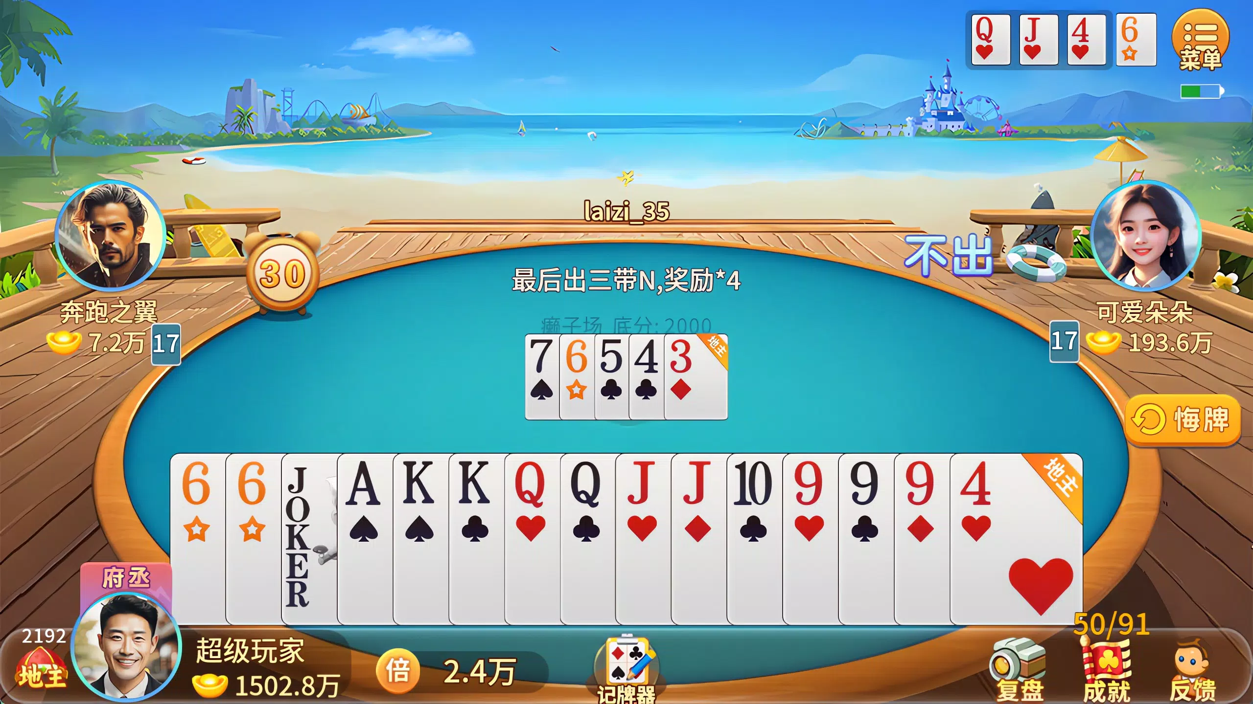 模拟真人出牌逻辑,队友配合默契,对手出牌灵活