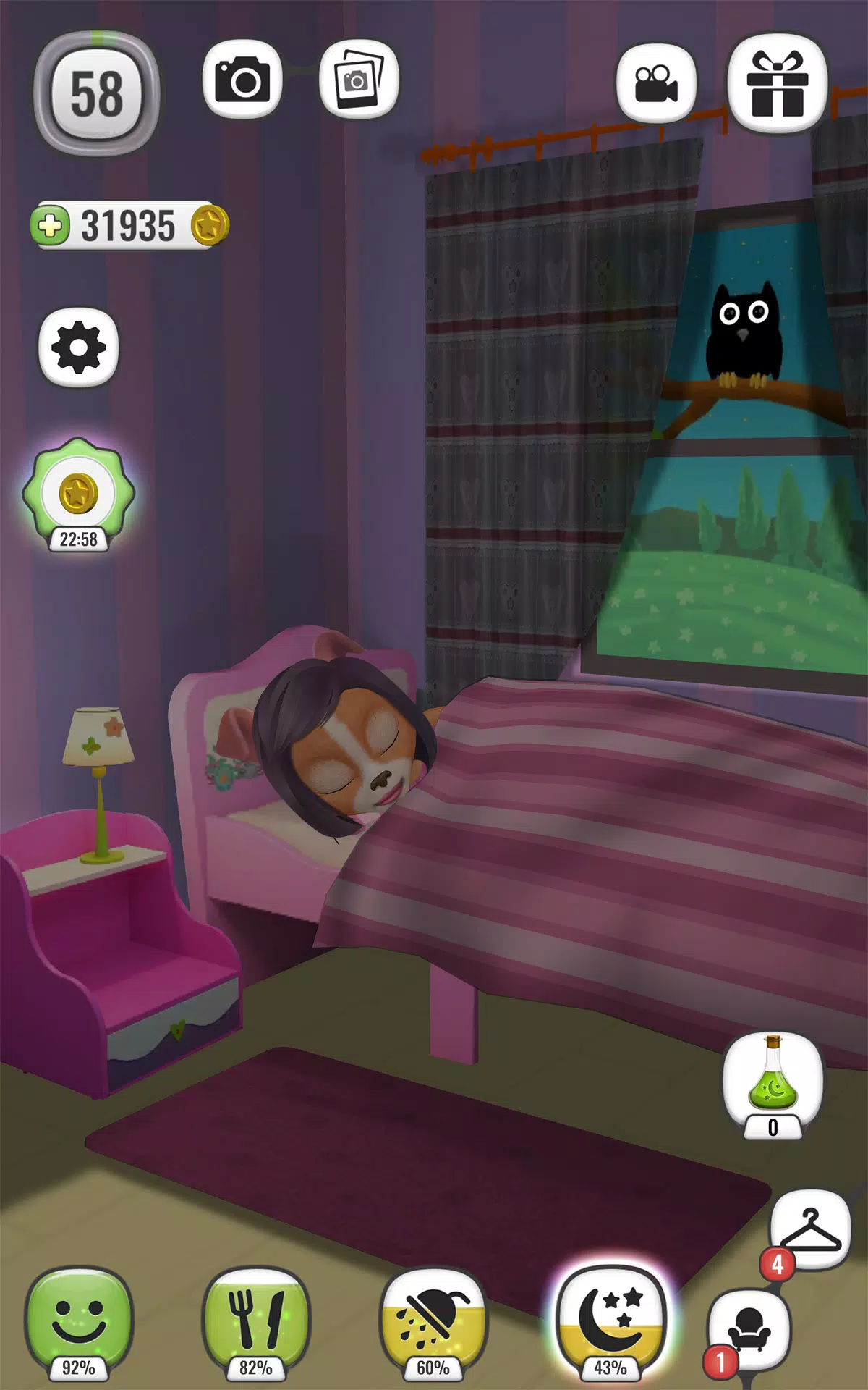 当你采用菊花,她只是需要照顾的一个可爱的小狗说话。小心的能量水平,因为你的虚拟宠物需要为了能整天玩她的睡眠。