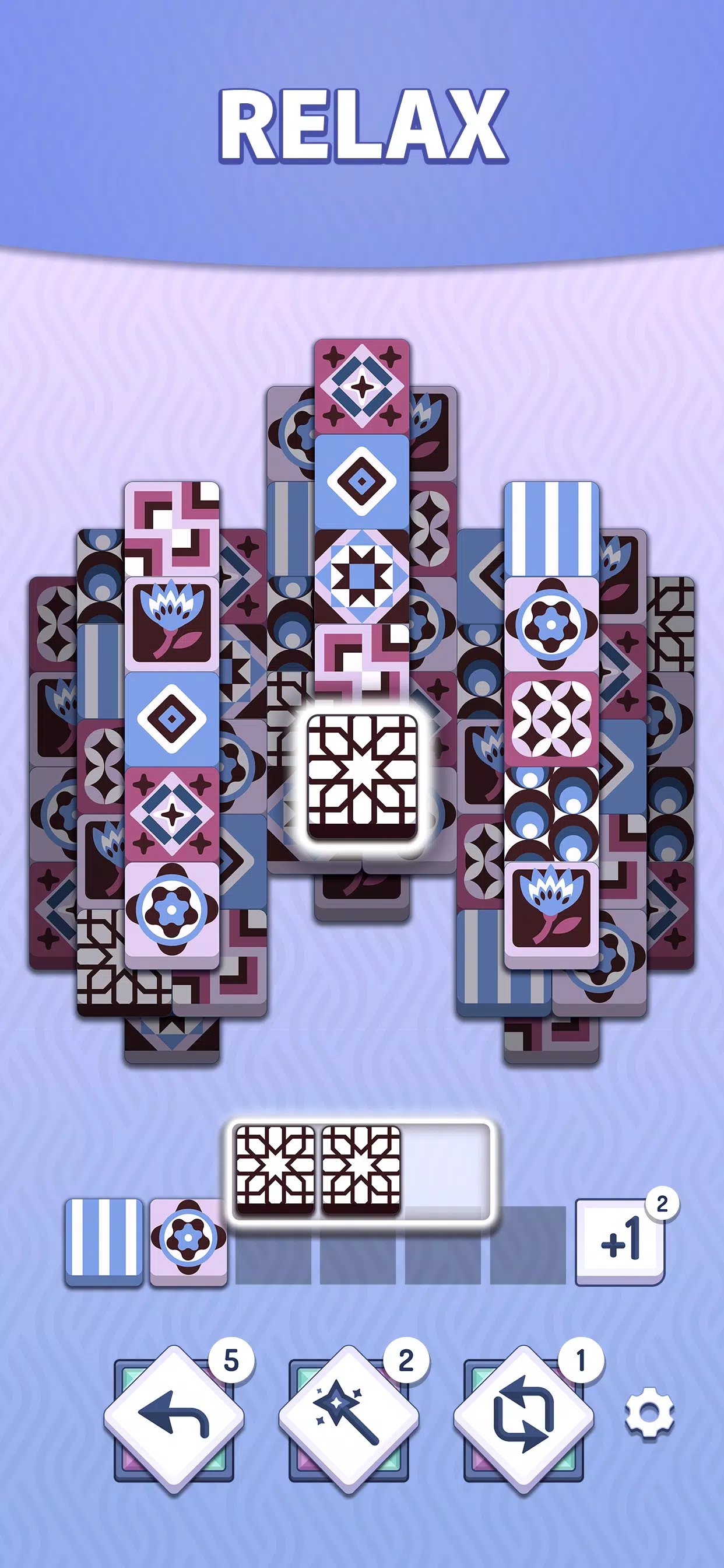 目标很简单:三消即可。点击方块将其移动到托盘中,当收集到三个相同的方块时,它们会消失。随着游戏进行,方块的排列和难度逐渐增加,让每一次三消都成为一场小小的艺术。